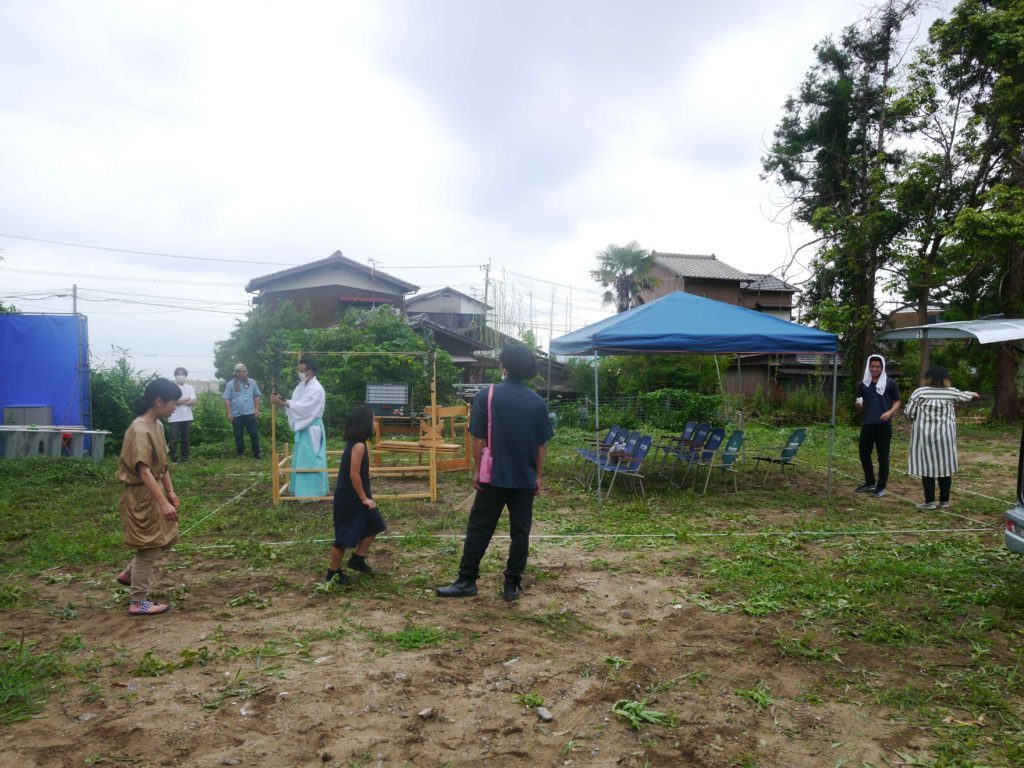 その後神様をお招きし、祝詞奏上で、神様にこの土地をお借りして、家を建てることを奉告します!