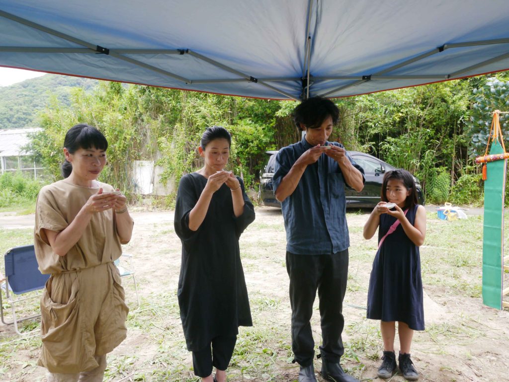 施主様も続いて、お神酒、お塩で祓い清めます!