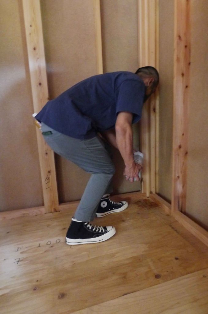 建物の四隅の柱に、酒・塩・お米を撒いて清め今後の工事の無事、安全を祈ります!