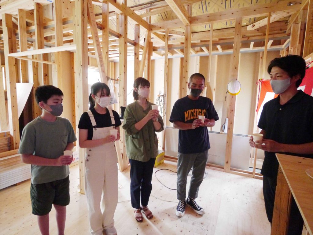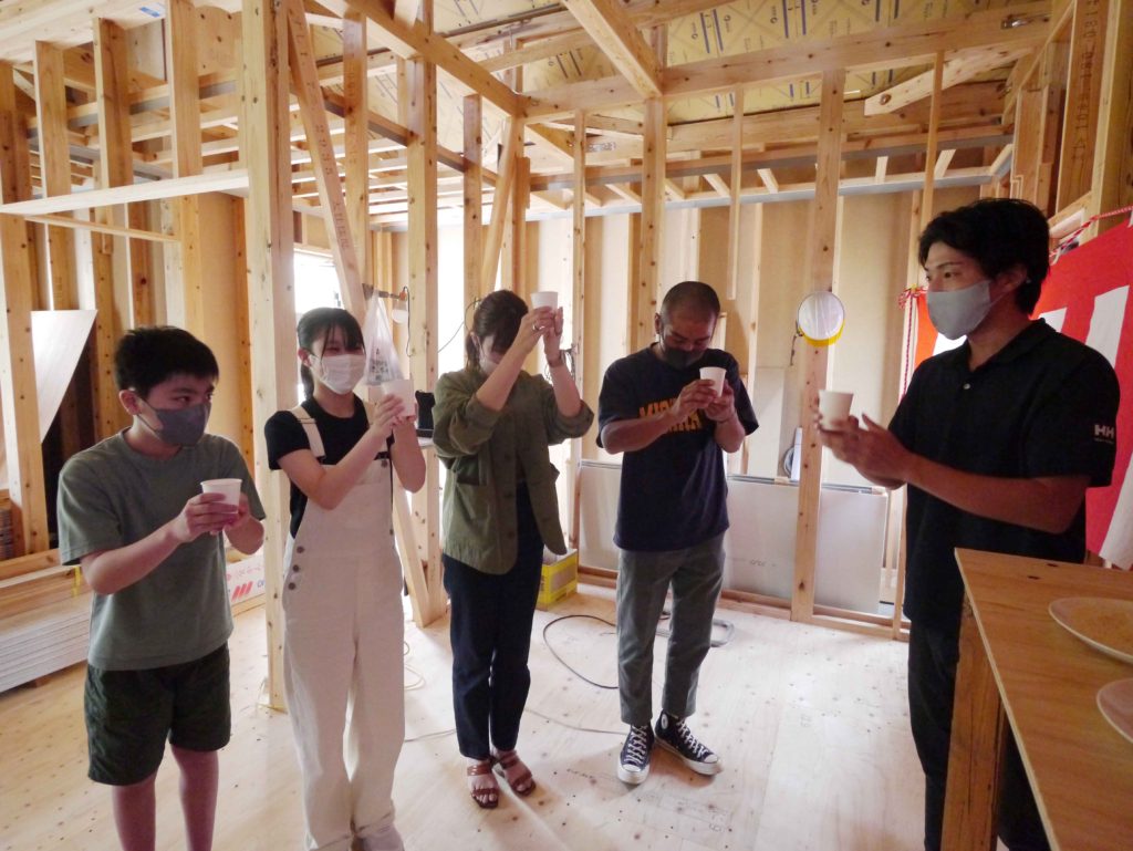 無事に上棟したことへの感謝の気持ちと今後の工事の無事安全を願って、上棟式を行いました!