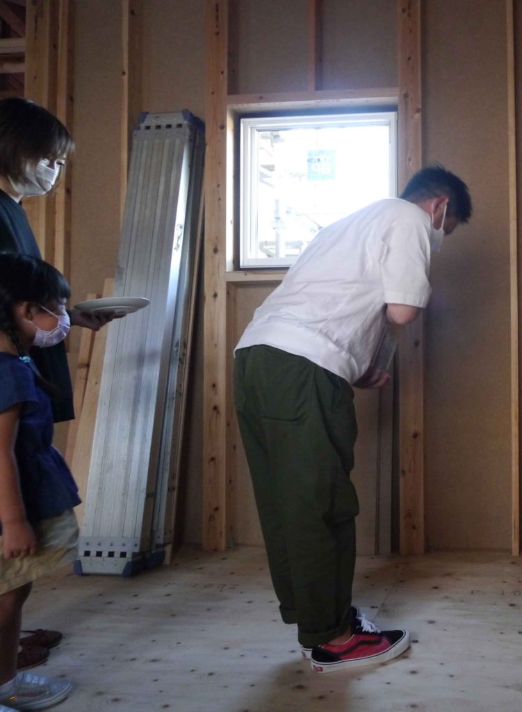 この後ご近所の皆様に、無事に上棟したご報告と、お餅を配りにK様は出かけていきました!