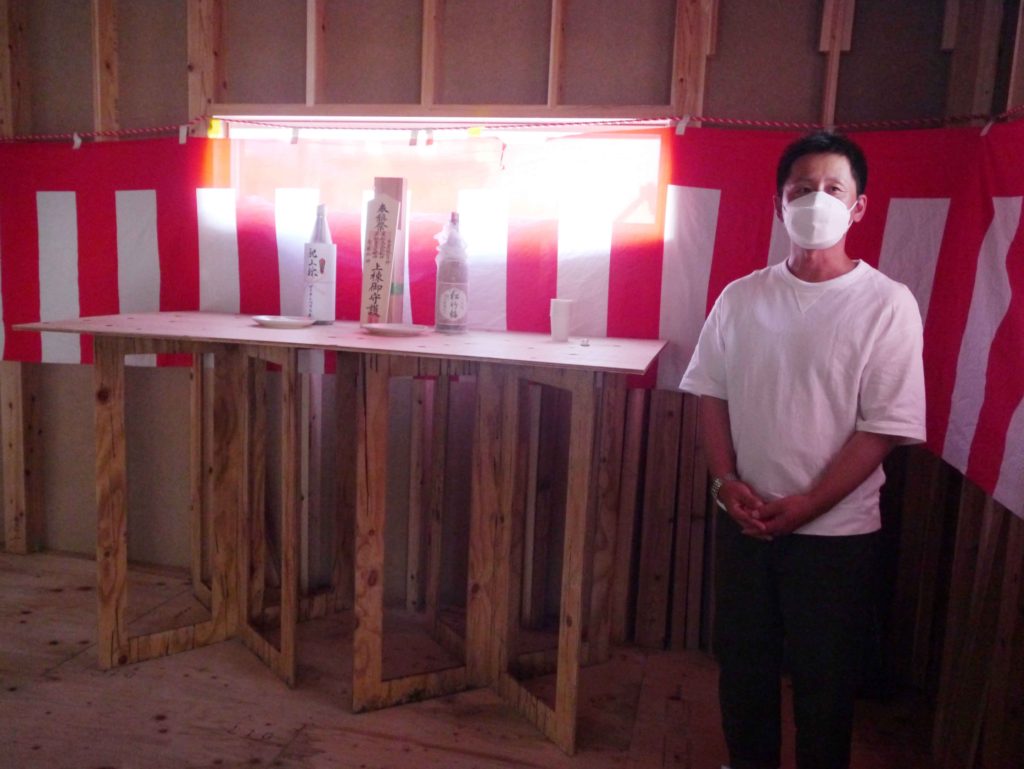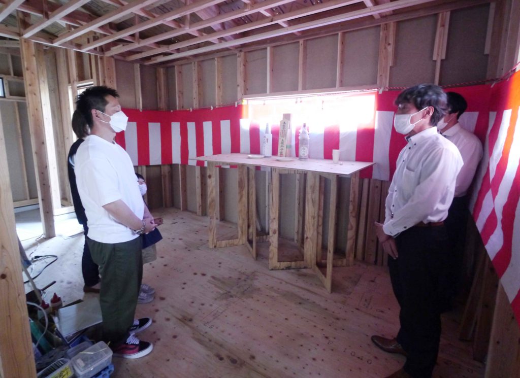 工事関係者と一緒にお祝いする場という意味が強く、神主さんは来られません!