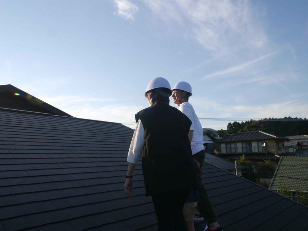 安全に配慮しながら、屋根の上からの景色を見ていただきました!