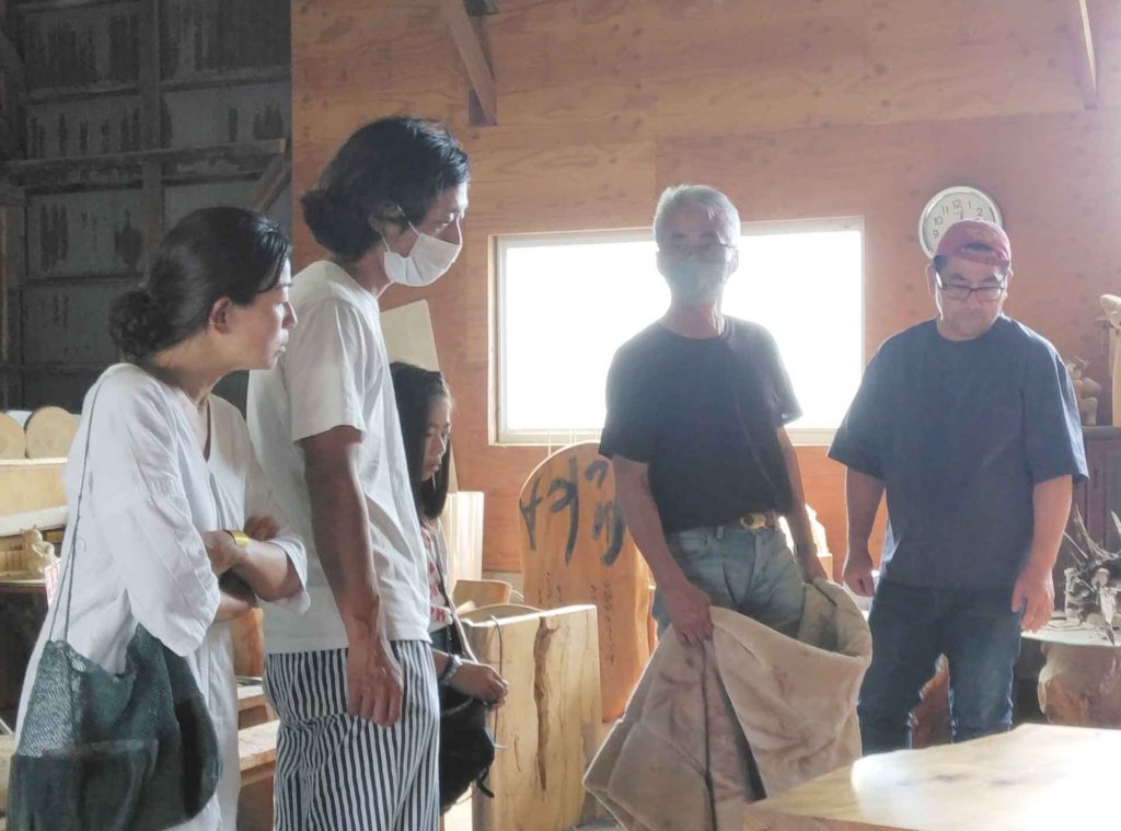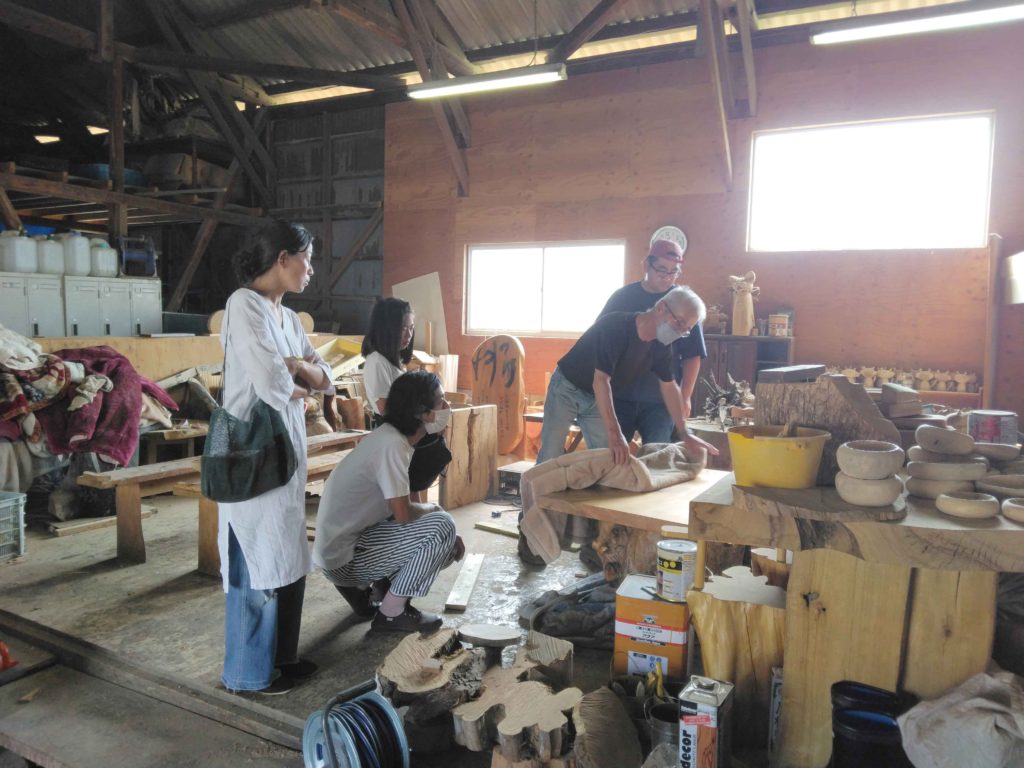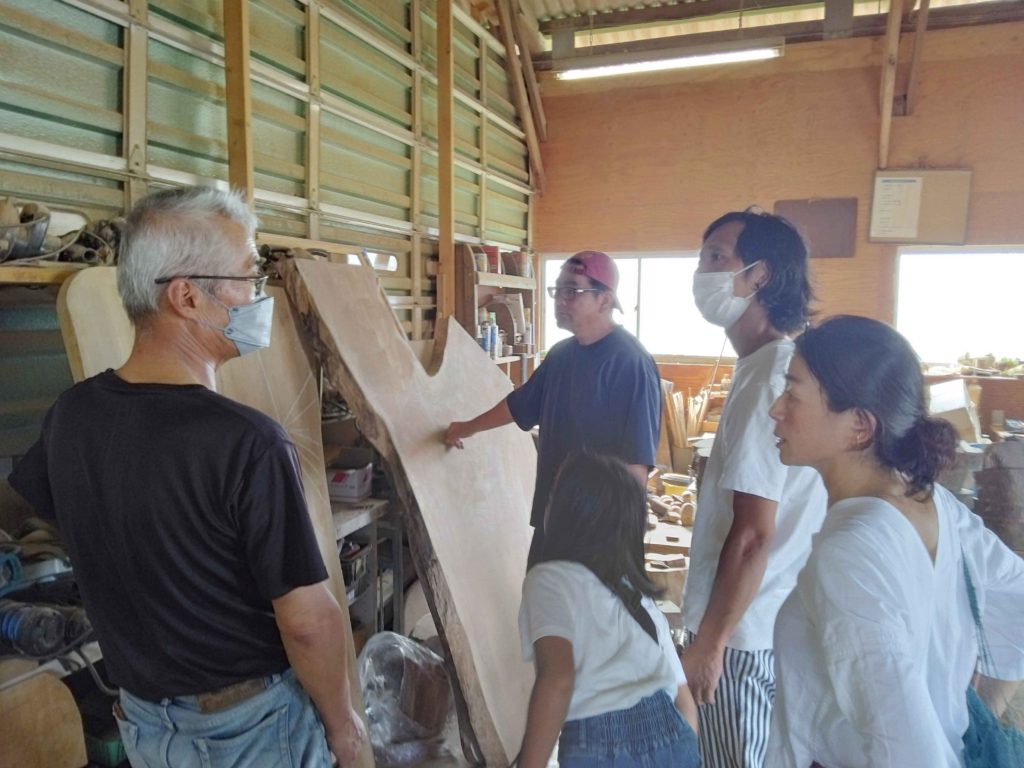 木が決まり、今度は家具を製作されている作業場で、仕上がったテーブルを参考に見せていただきました!