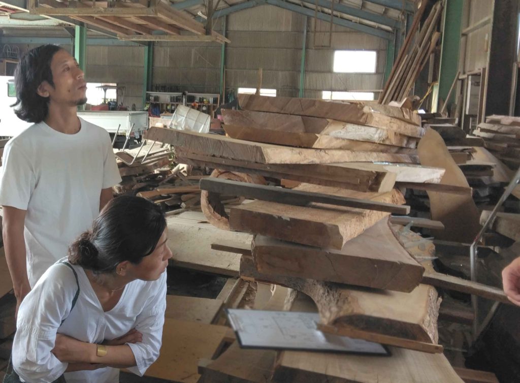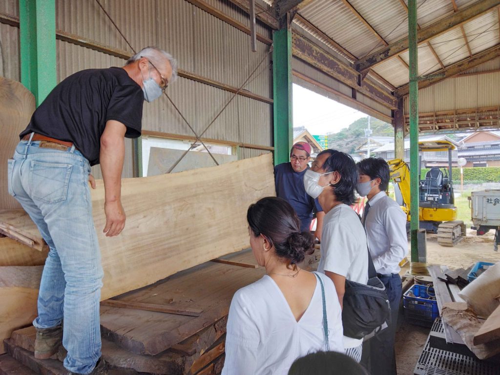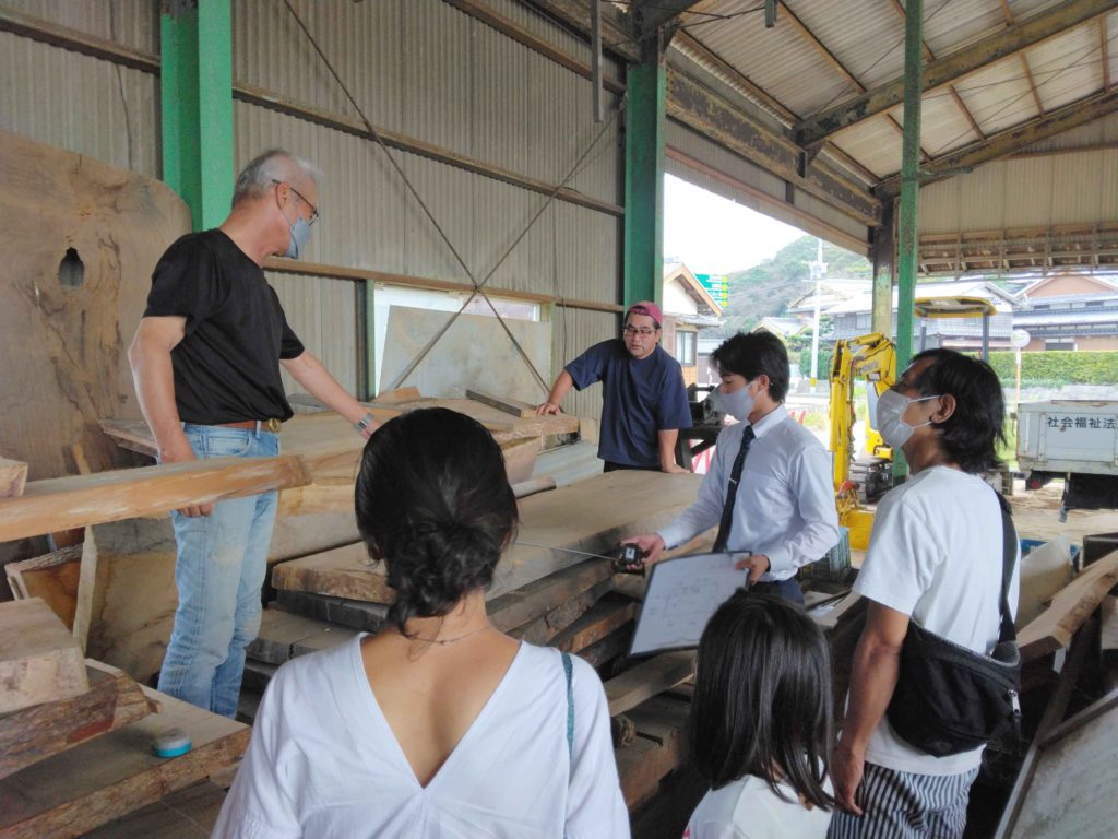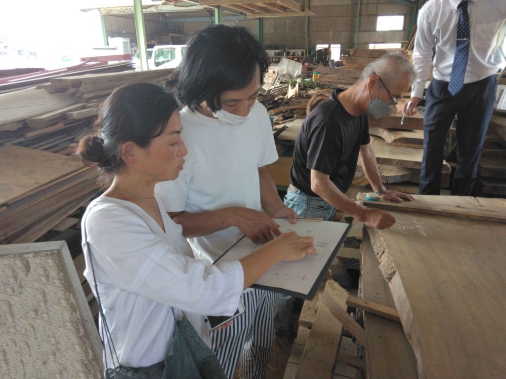 今回F様は、店舗に置くテーブルをご依頼されますが、その材料である一枚板選びに来ていただいてます!