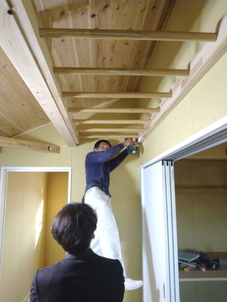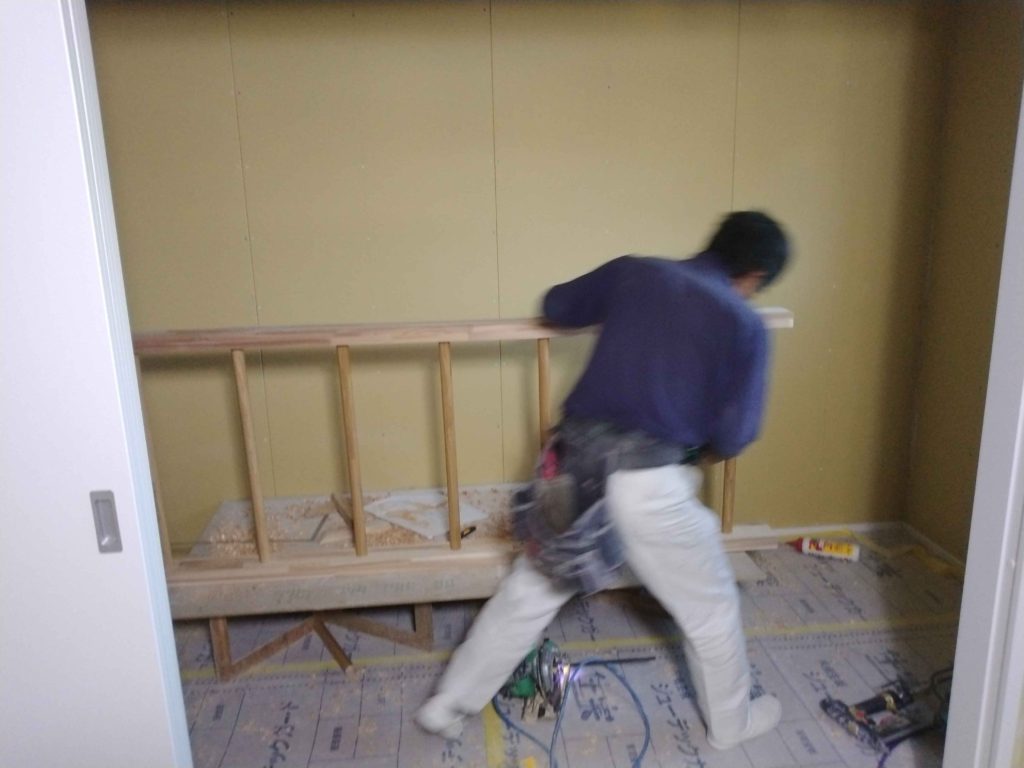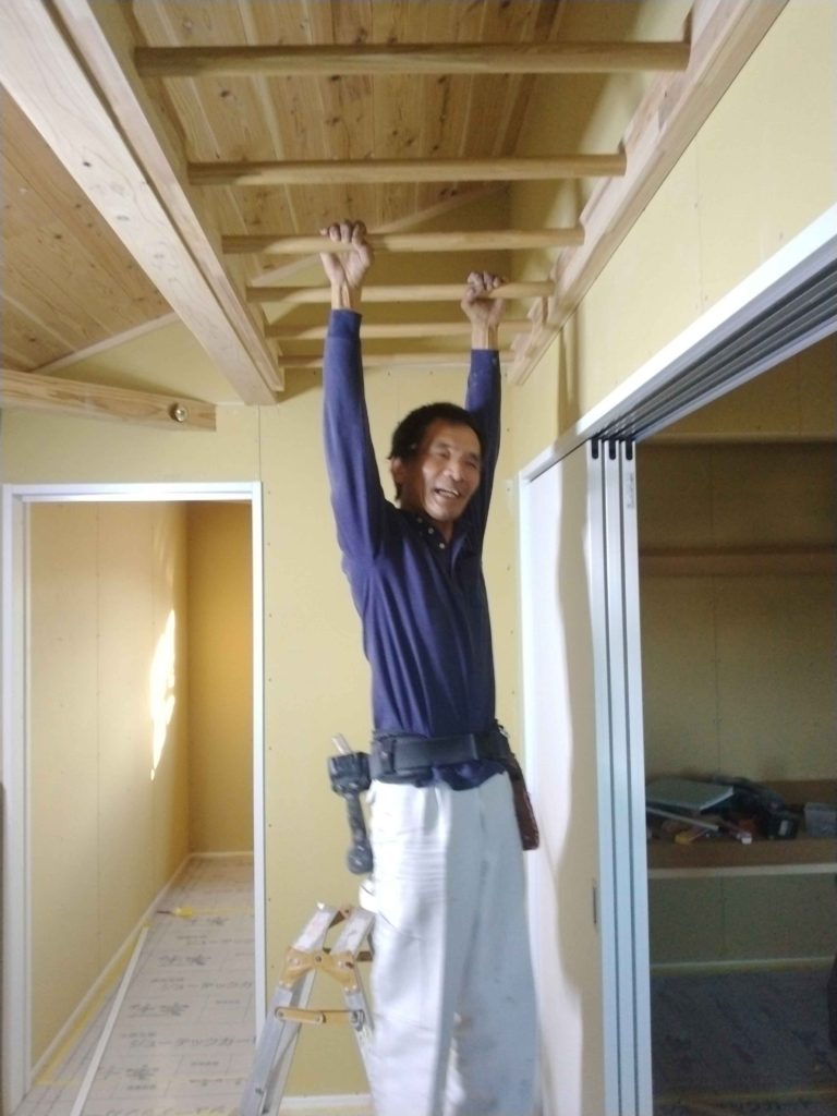 そして現場で造作工事を進めている、加瀬棟梁を発見!
