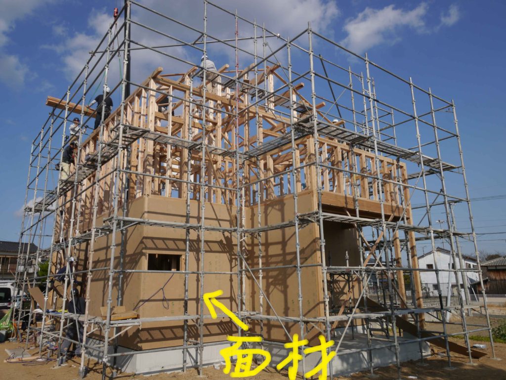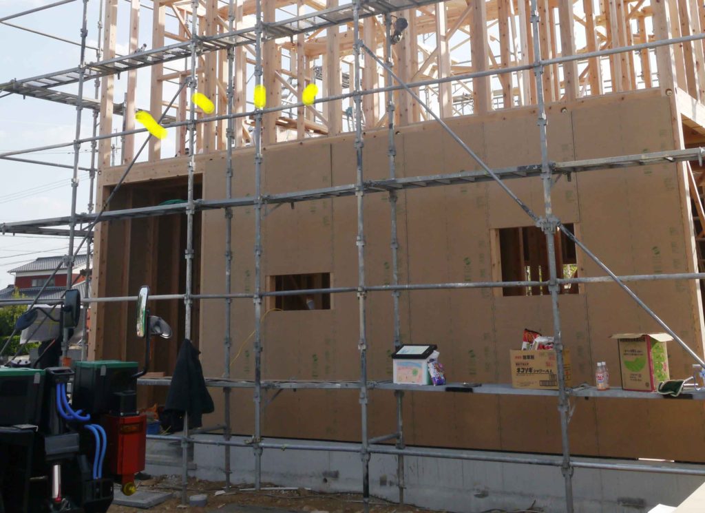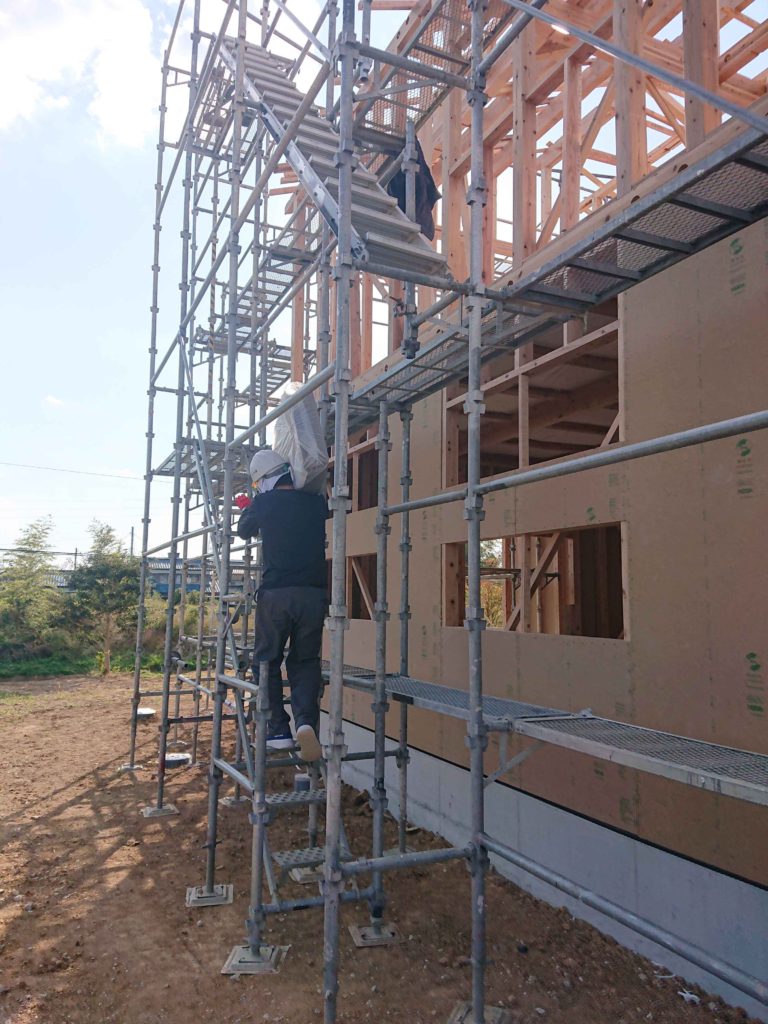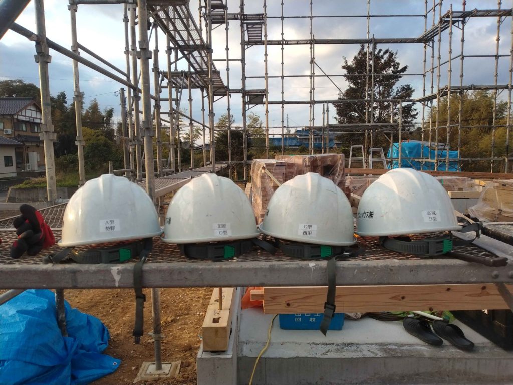 棟上げは、小屋組みの時に一番高いところに棟木を納めることから「棟上げ」「上棟」と言われるのですが、棟木を設置しても工事はまだ終わりません(-_-;)
