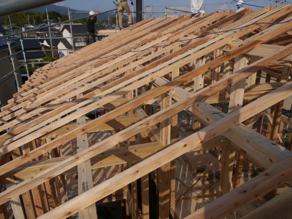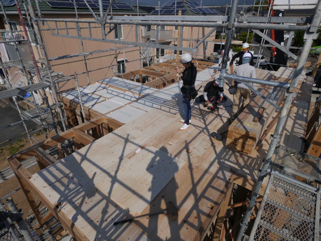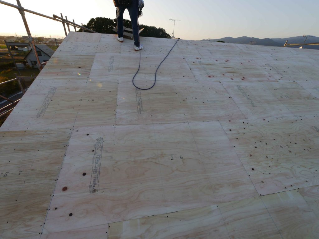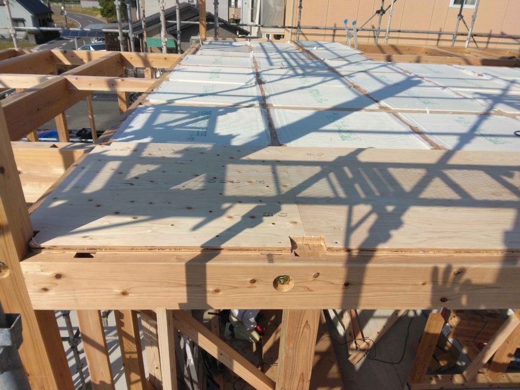 屋根の小屋組みが終わったら、屋根の下地になる野地板を設置する工程まで進みます!