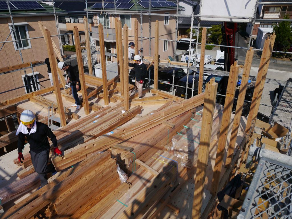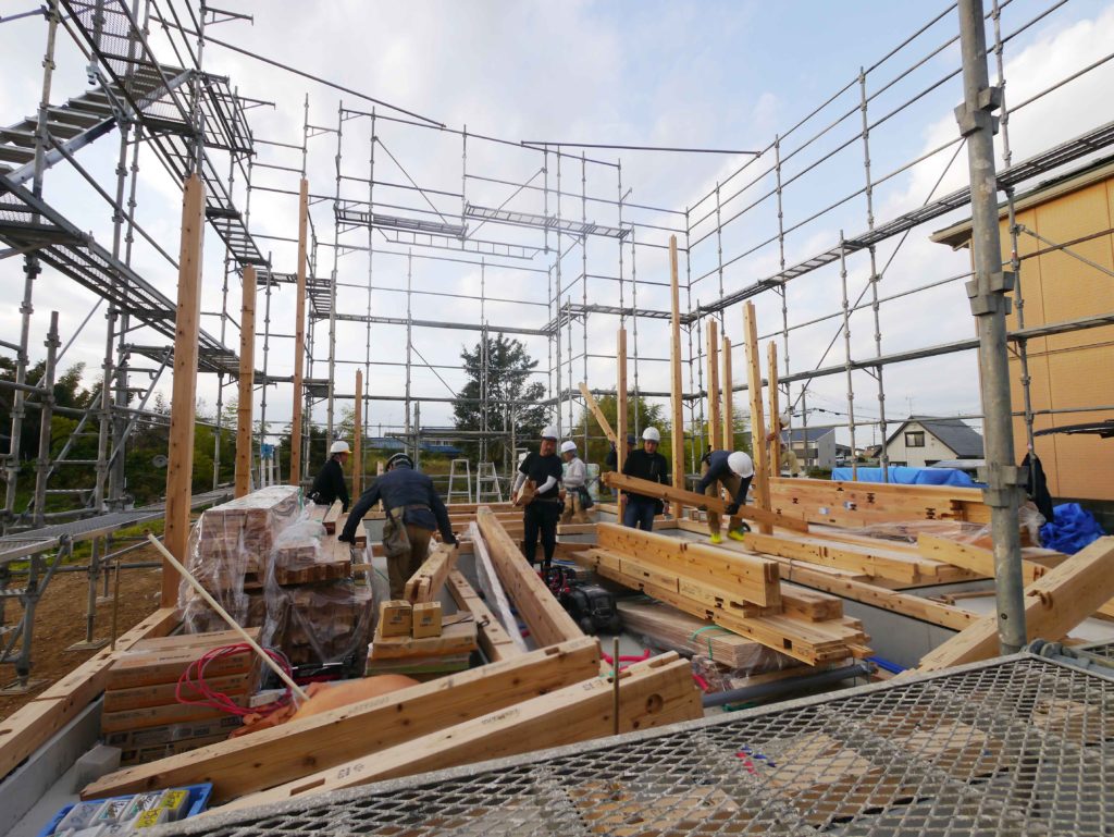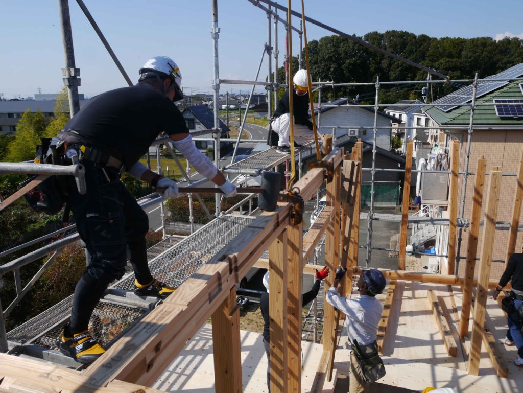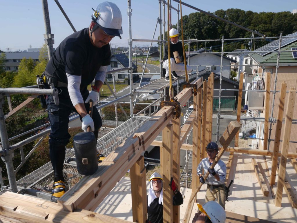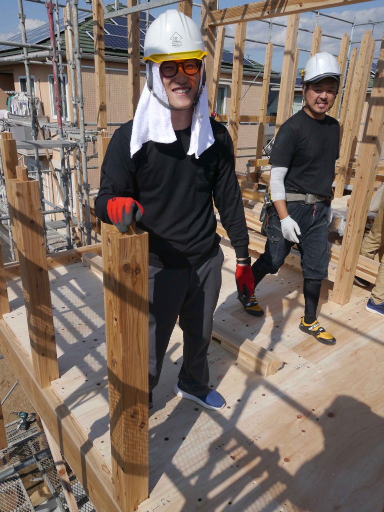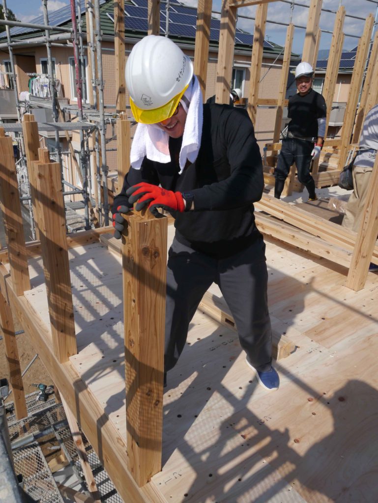 棟上げの現場では、セイケンスタッフも大工さんたちと一緒に動きます!