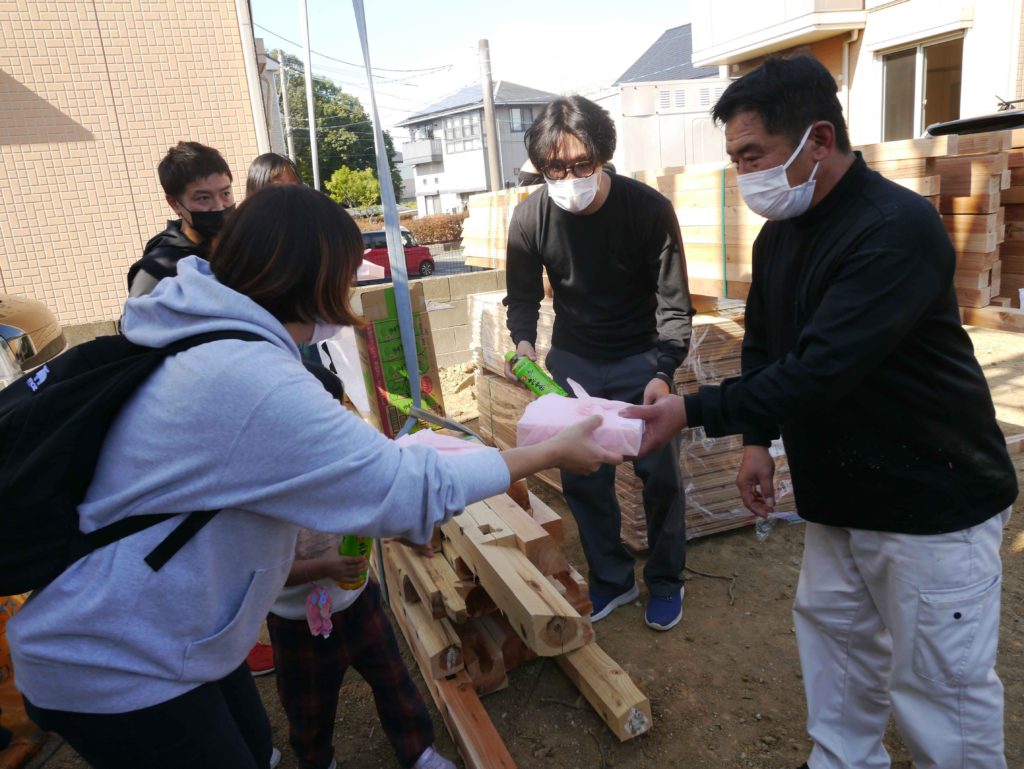 大工さんだけでなく、スタッフ一人一人に手渡してくれる、Hちゃん、Mちゃん♡