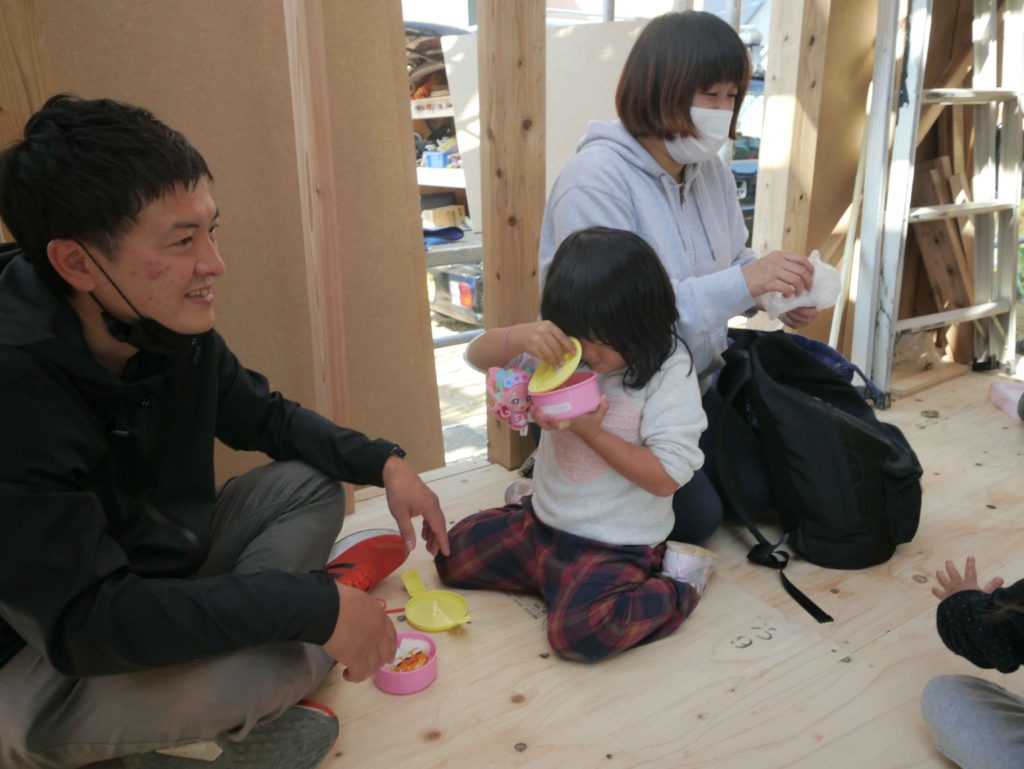 それから・・ずいぶんと作業が進んだところで、大工さんたちのお昼休憩になりました!