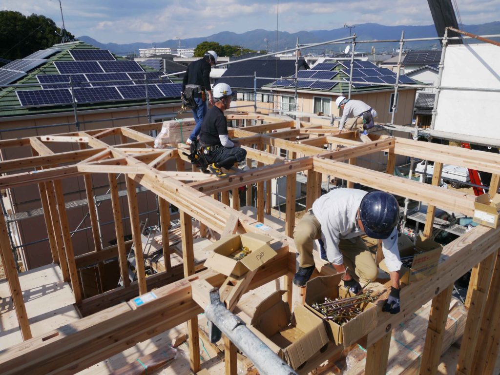 棟上げの現場での一つ一つの作業が強いお家を造っていきます!