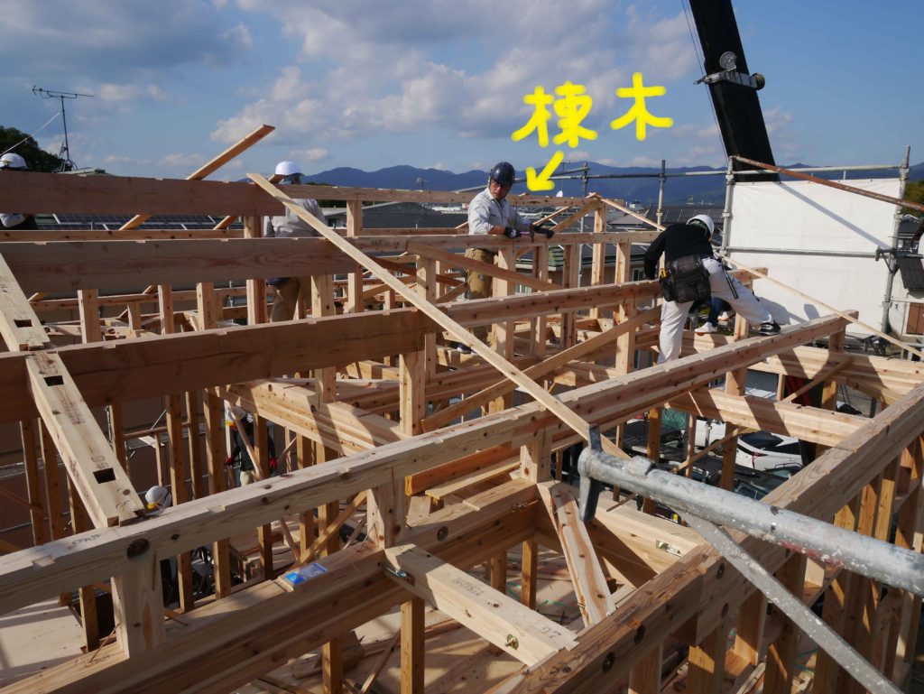 屋根の一番高いところに用いている横架材を棟木と呼びます!