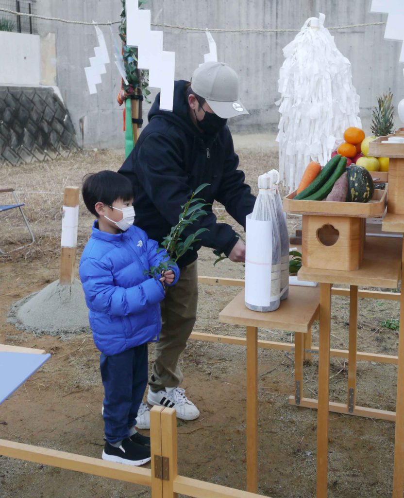 神主さんが祭事を進めながら、ひとつひとつ丁寧に動作を教えてくれるので、とても安心して地鎮祭にのぞめますよ(#^^#)