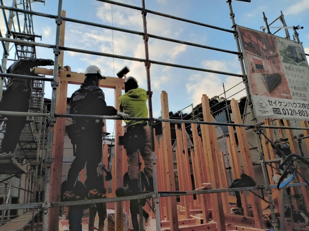 大勢の大工さんたちがテキパキと作業を進めています!