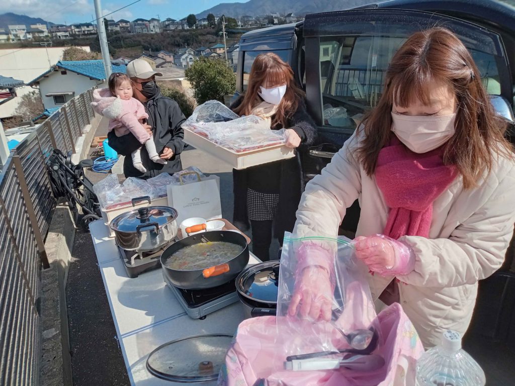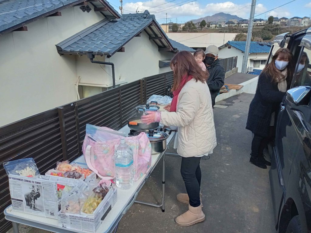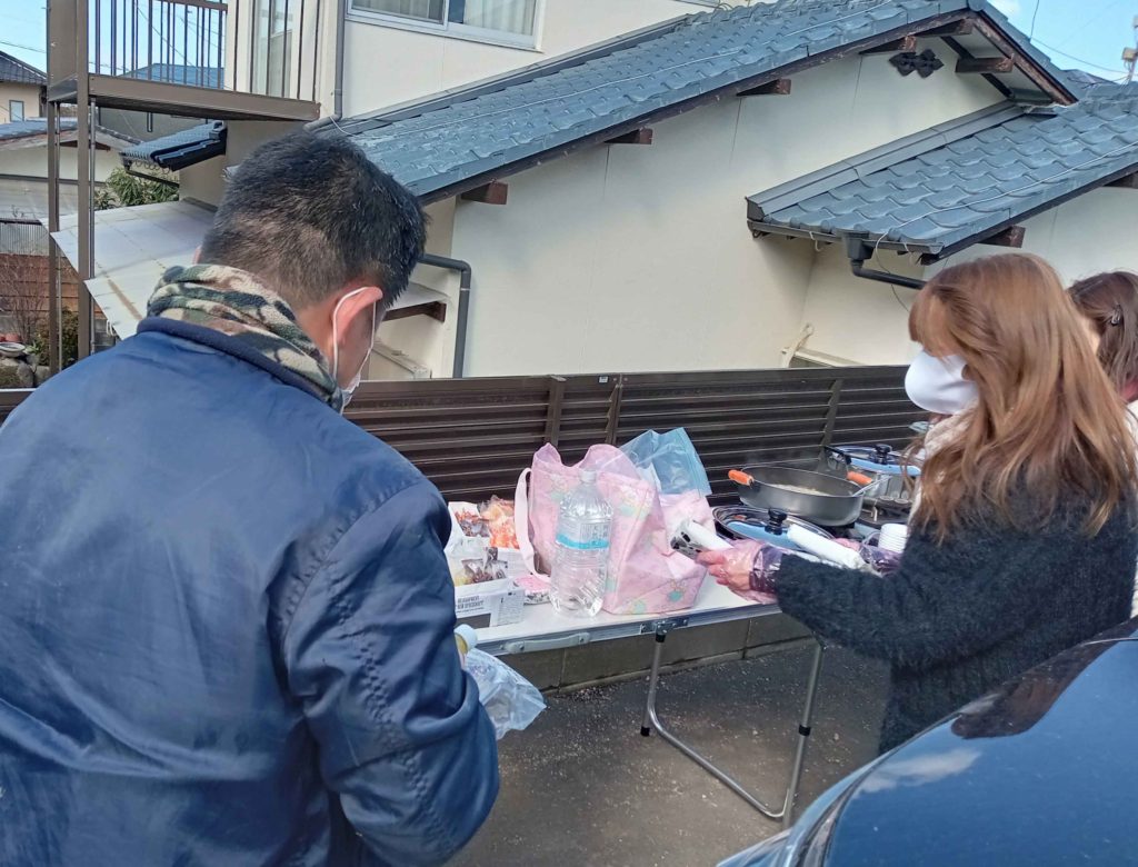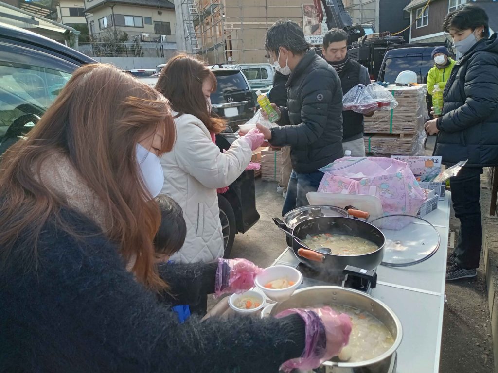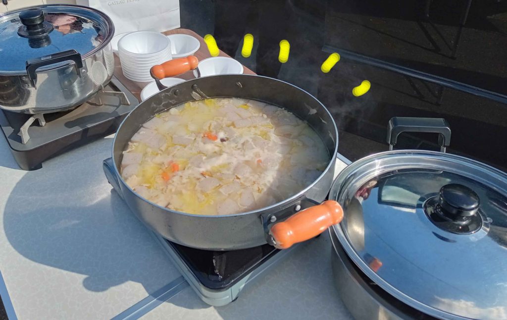 温かい豚汁を振る舞われていました!