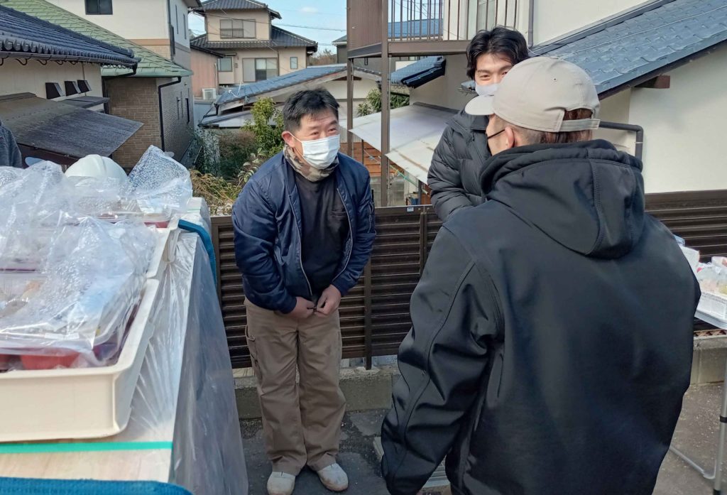 お弁当をお渡しする時に、松島棟梁とお話しするK様!