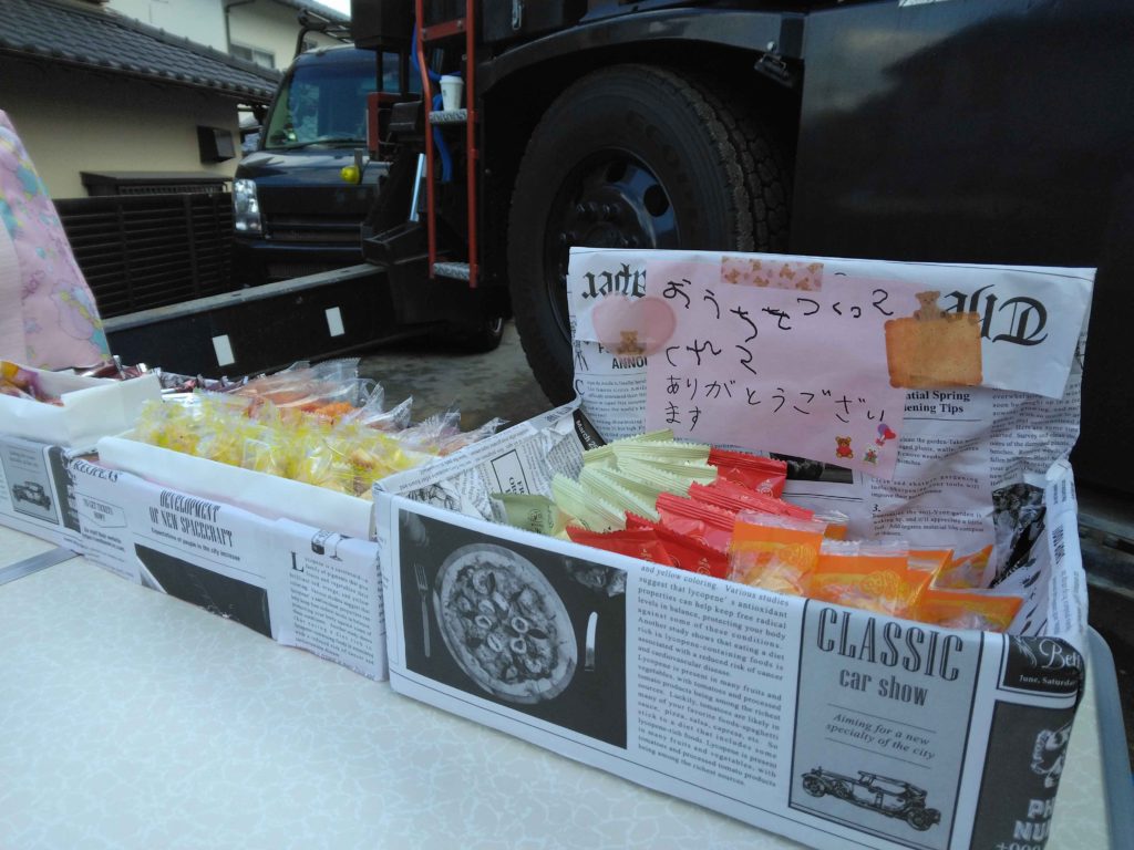 大工さんたちの休憩の時に・・・と、差し入れを用意してくださいました!