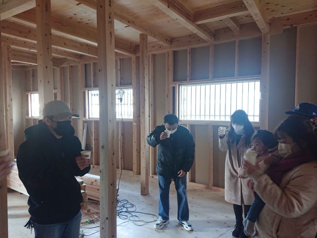棟上げが無事に終わったことに感謝し、今後の工事の安全を祈願するための上棟式を執り行いました!