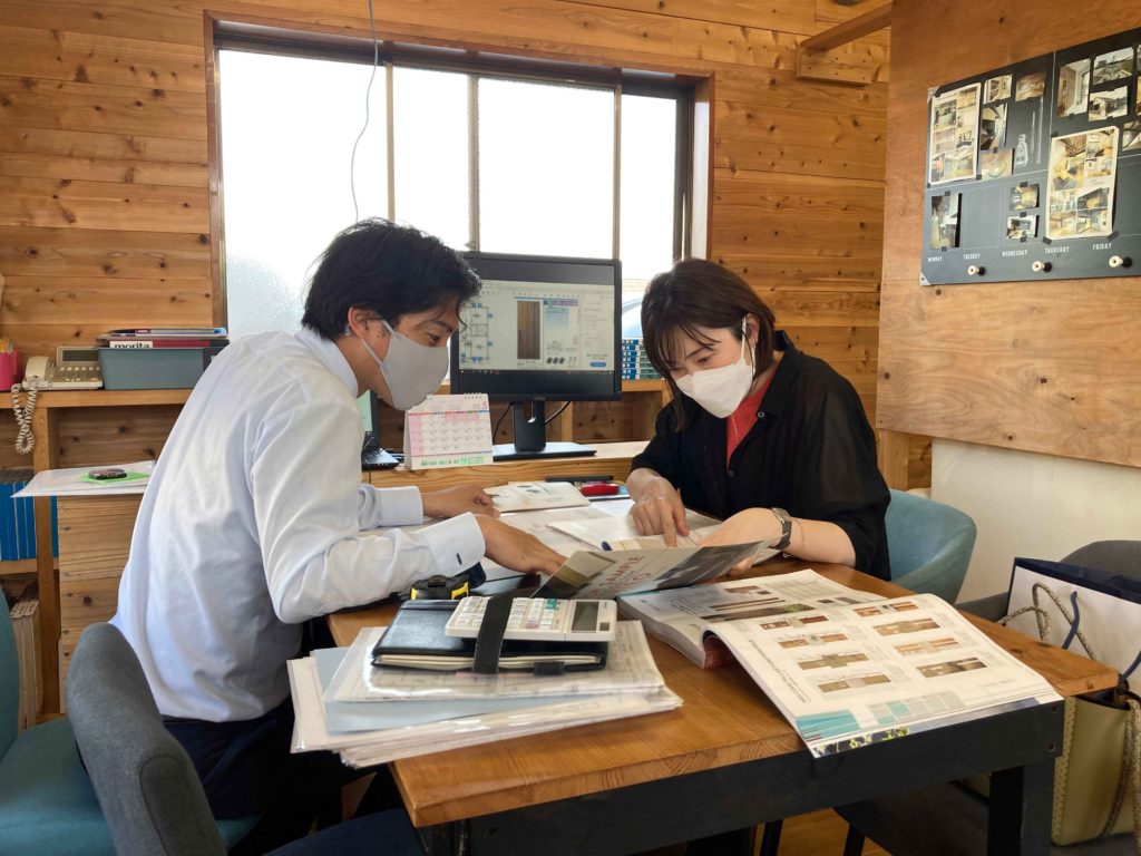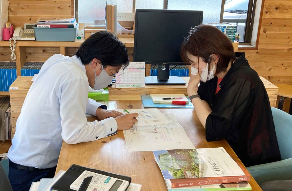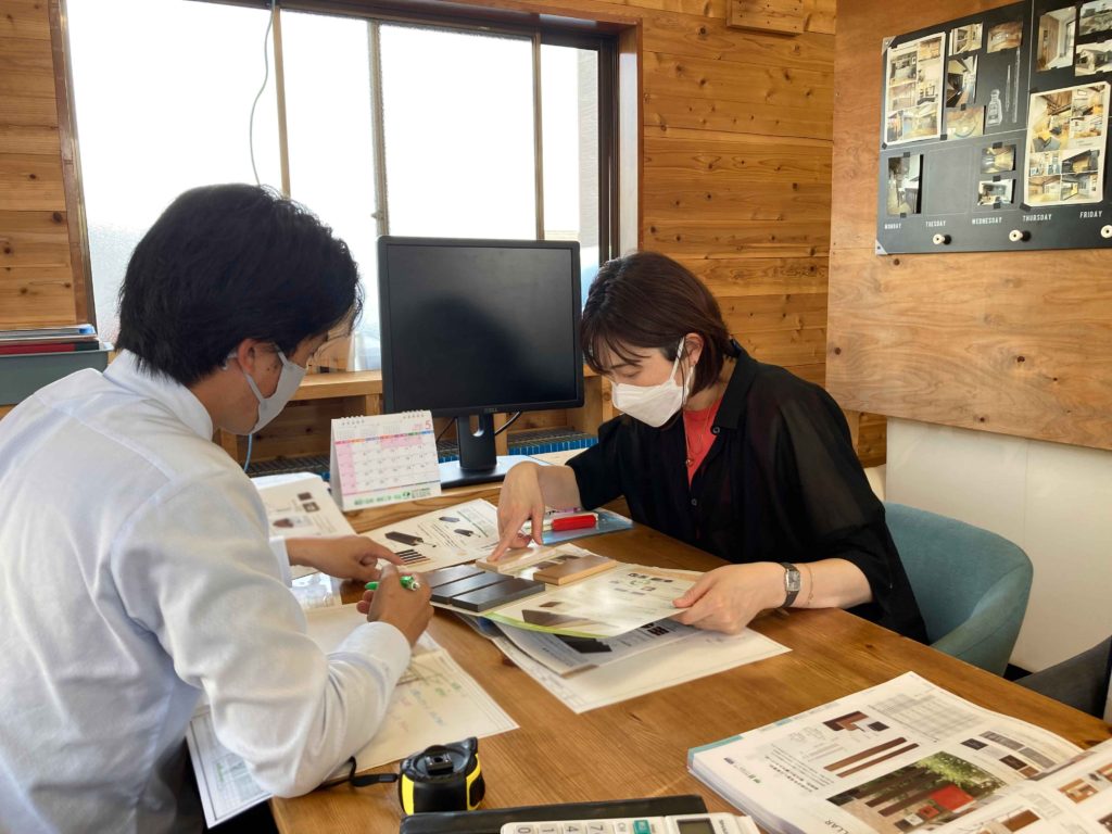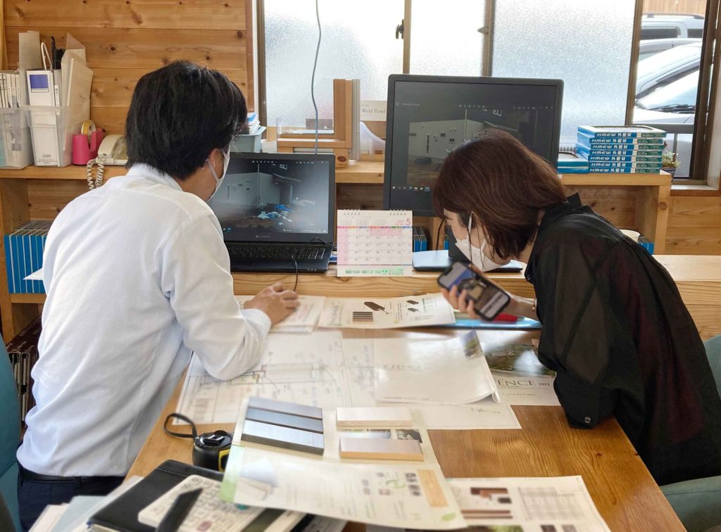 5月、気持ち良い陽光の日曜日、東区に建築中K様邸の打ち合わせが行われました!
