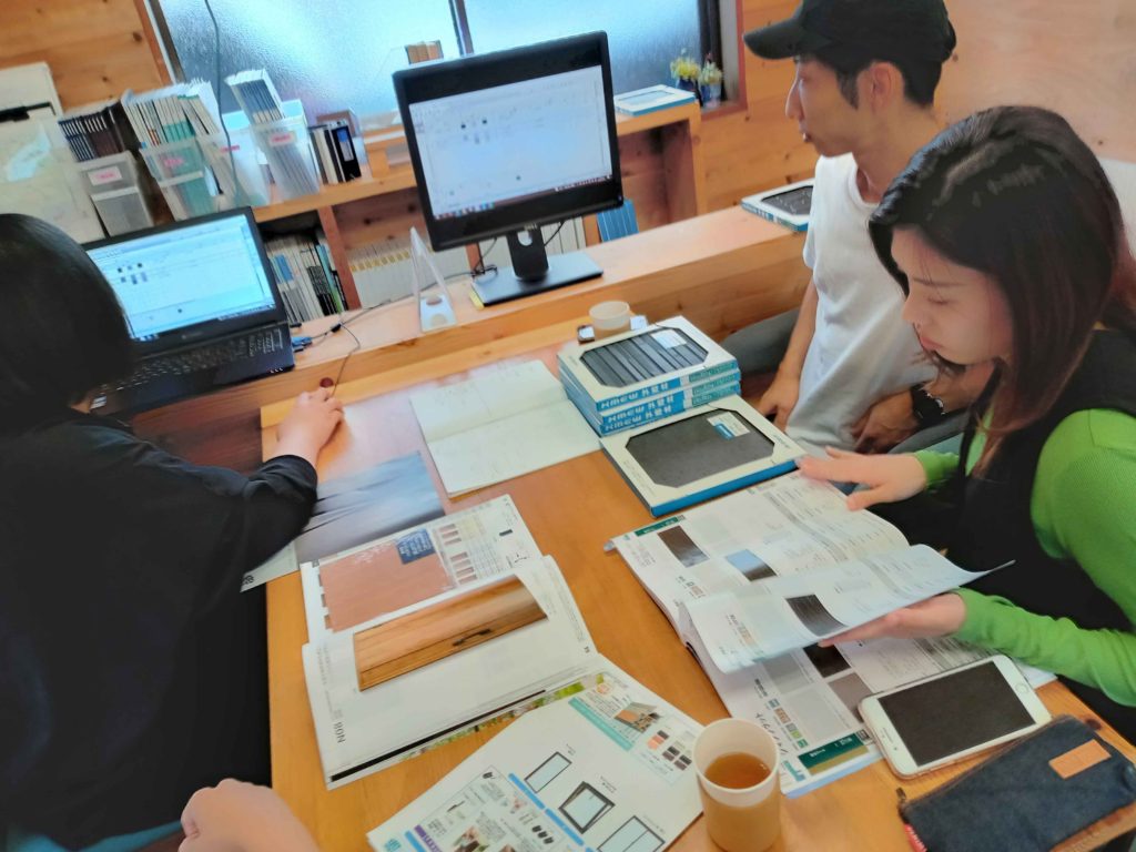 木目調、石積調、タイル調、またはフラットなものまでサンプルを組み合わせて考えていきます!