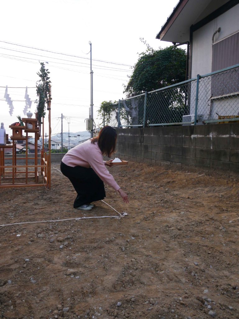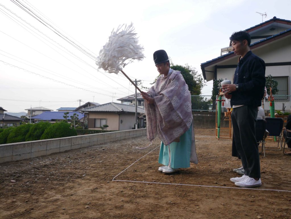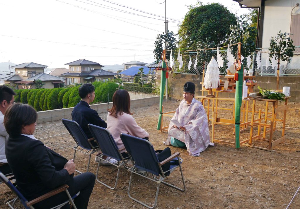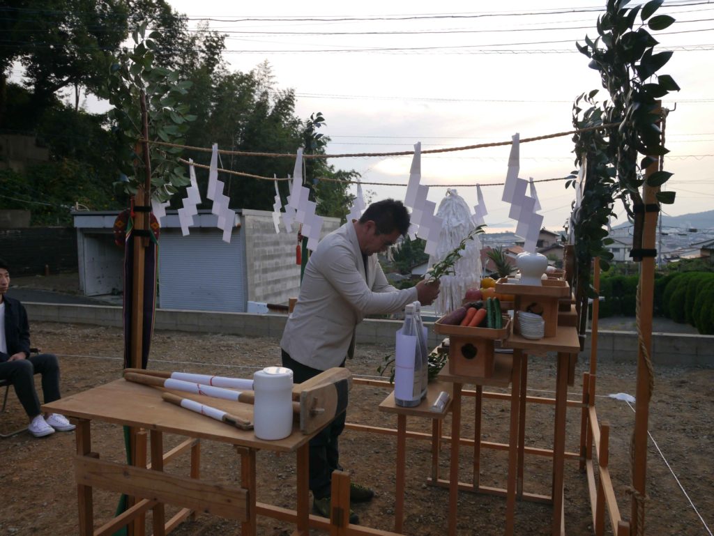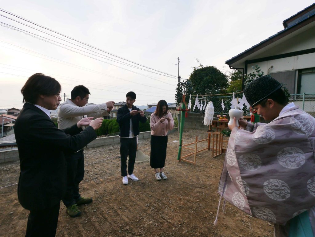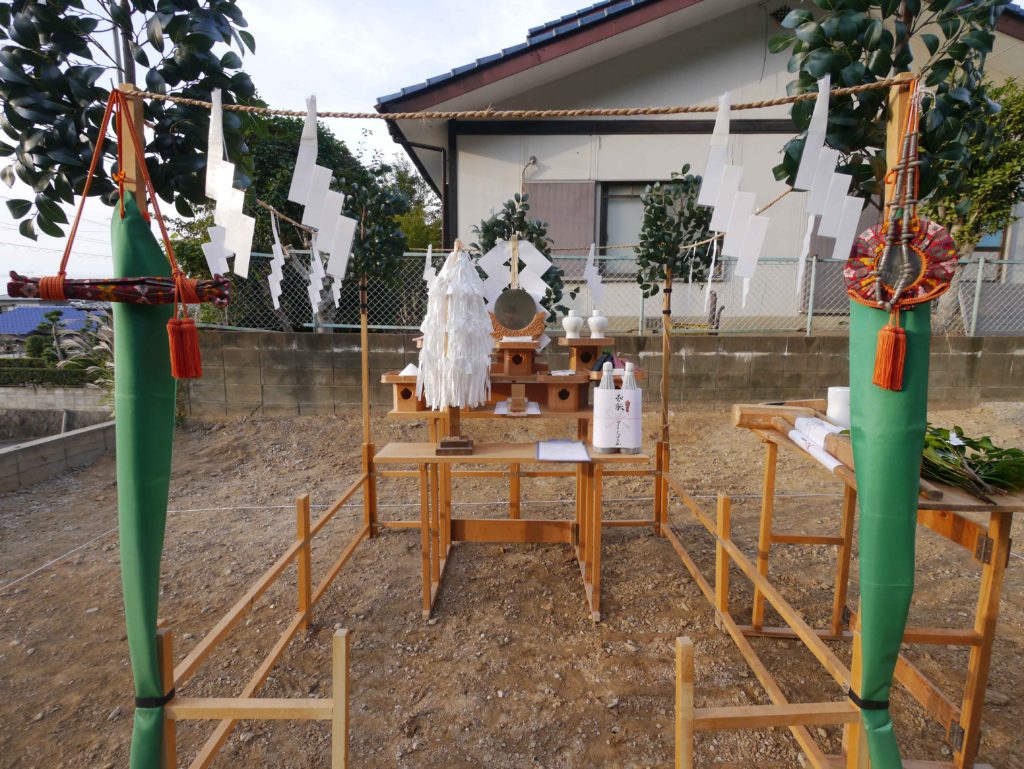 地鎮祭とは、その土地の神様を鎮め、土地を利用させてもらう事の許しを得る祭事で、建築工事が始まる前に行われます!