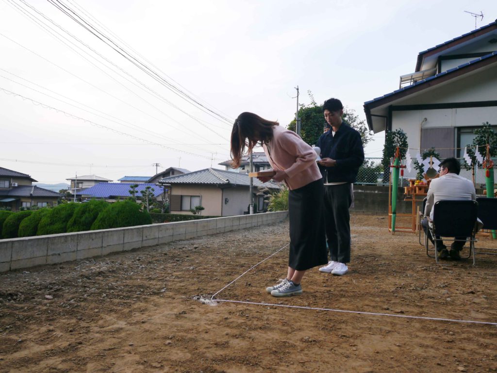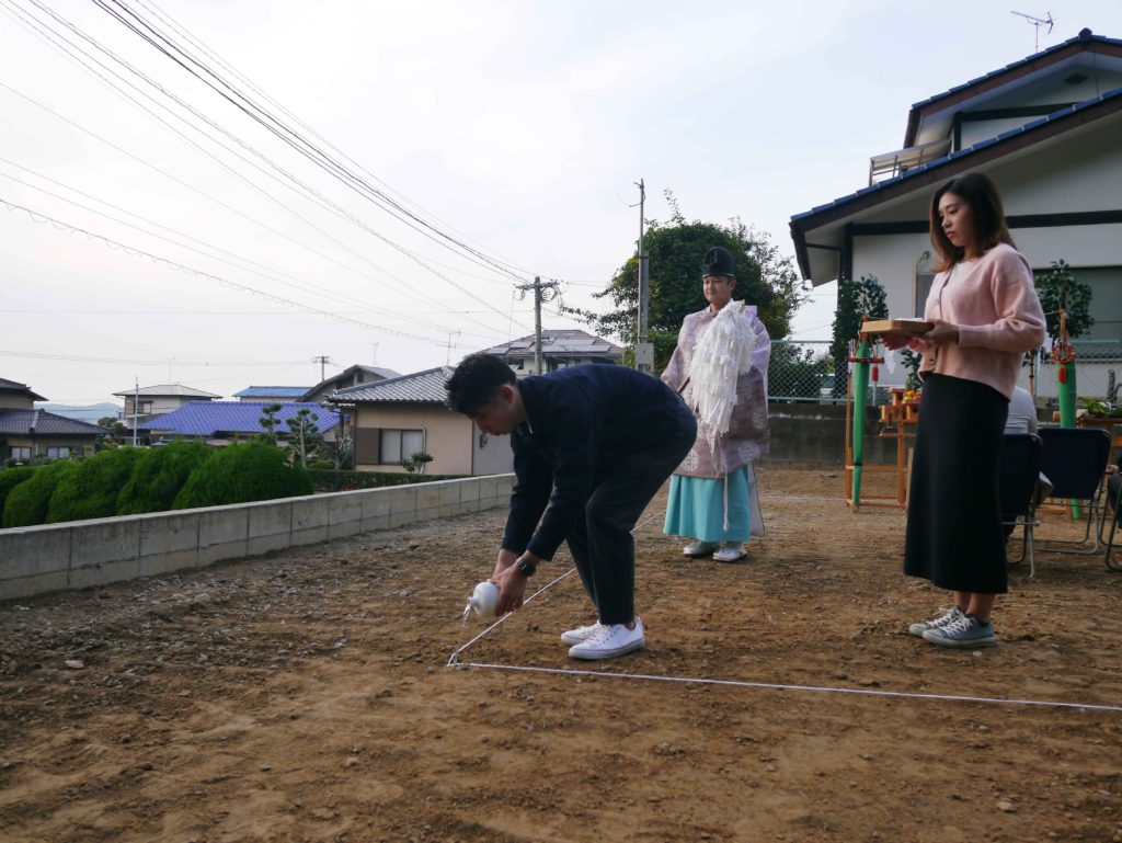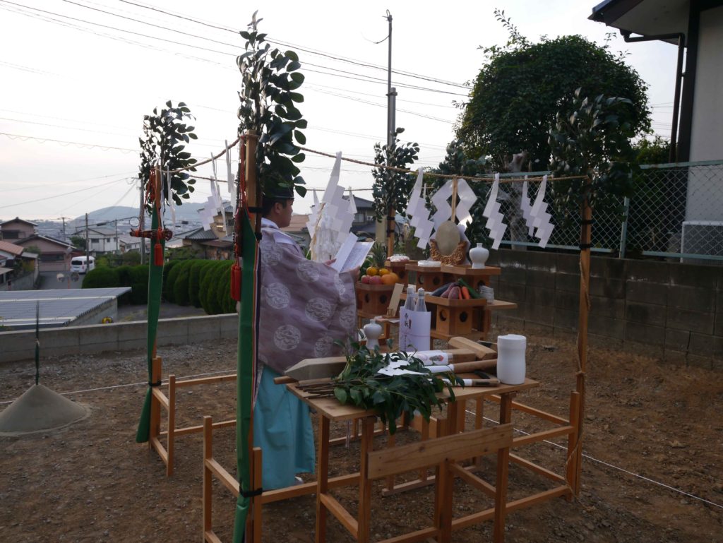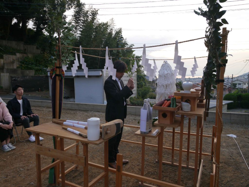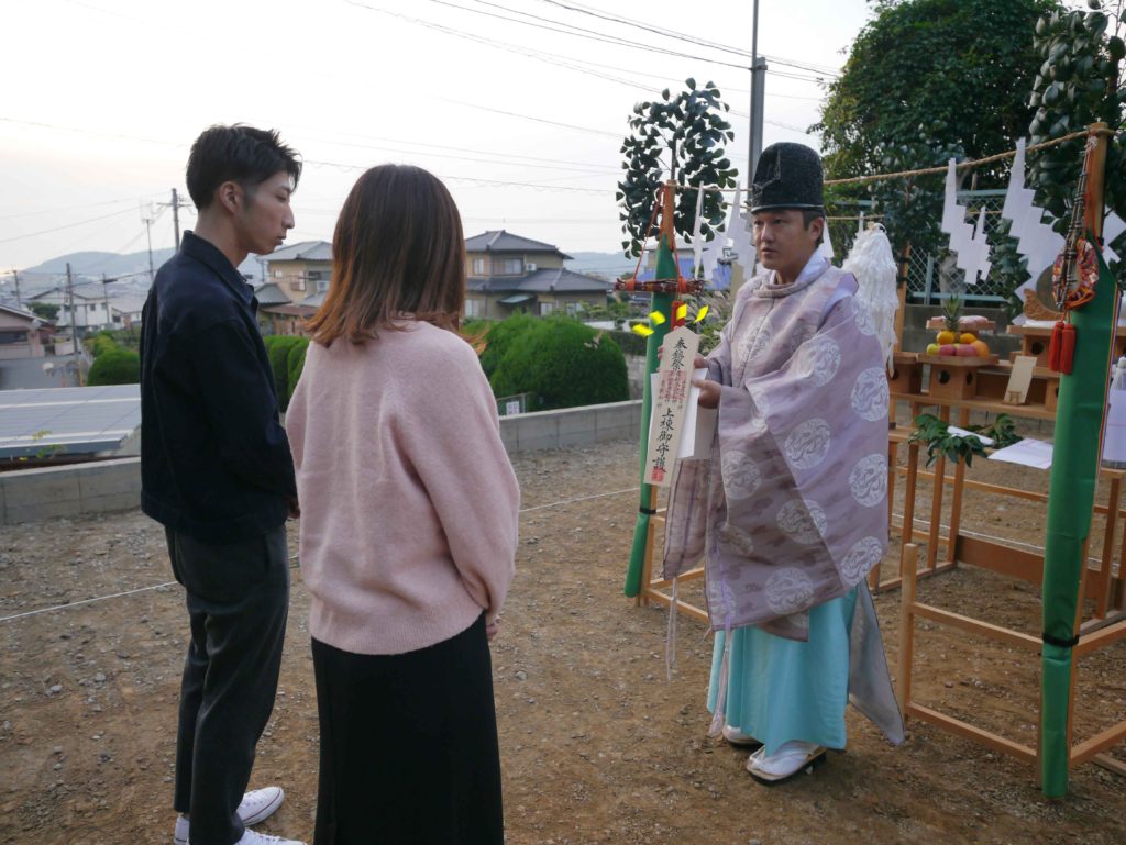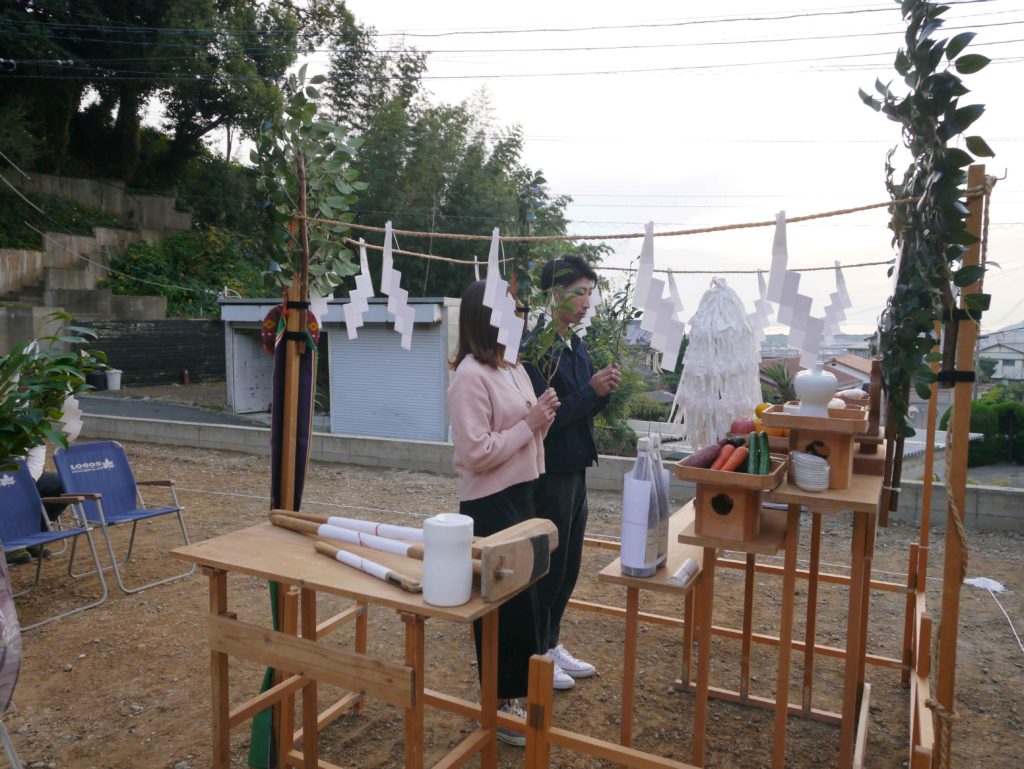 地鎮祭とは、その土地の神様を鎮め、土地を利用させてもらう事の許しを得る祭事で、建築工事が始まる前に行われます!