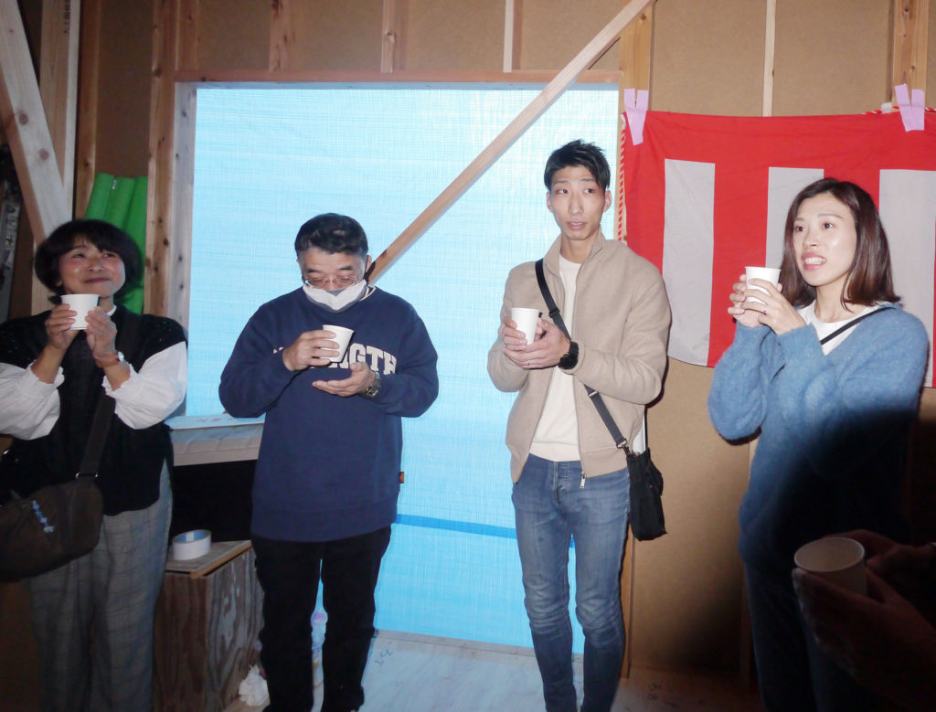 上棟のおめでたい席なので、「おめでとうございます!」のご唱和で行いました(*’▽’)