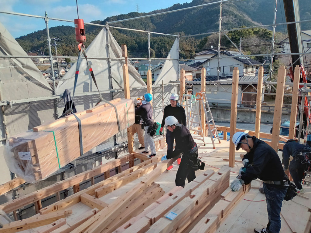 この棟木を設置することを「棟上げ」「上棟」と呼びます!