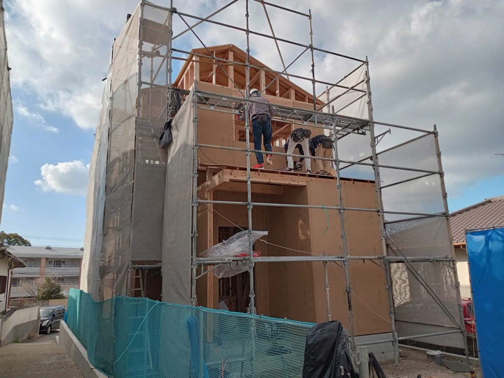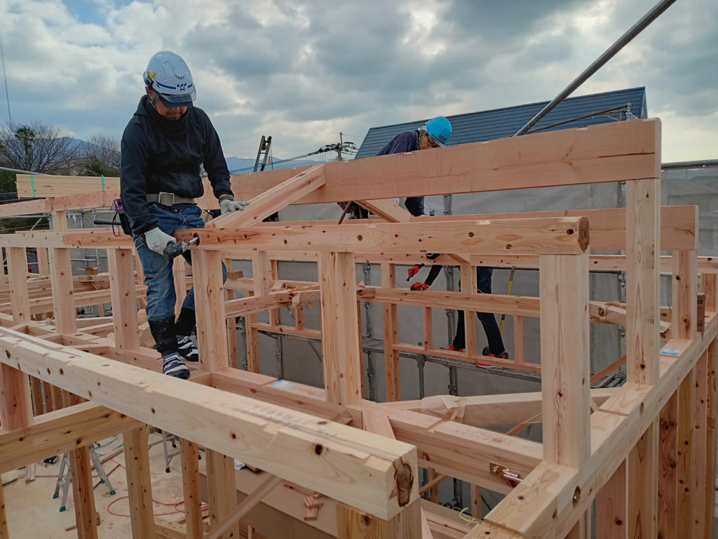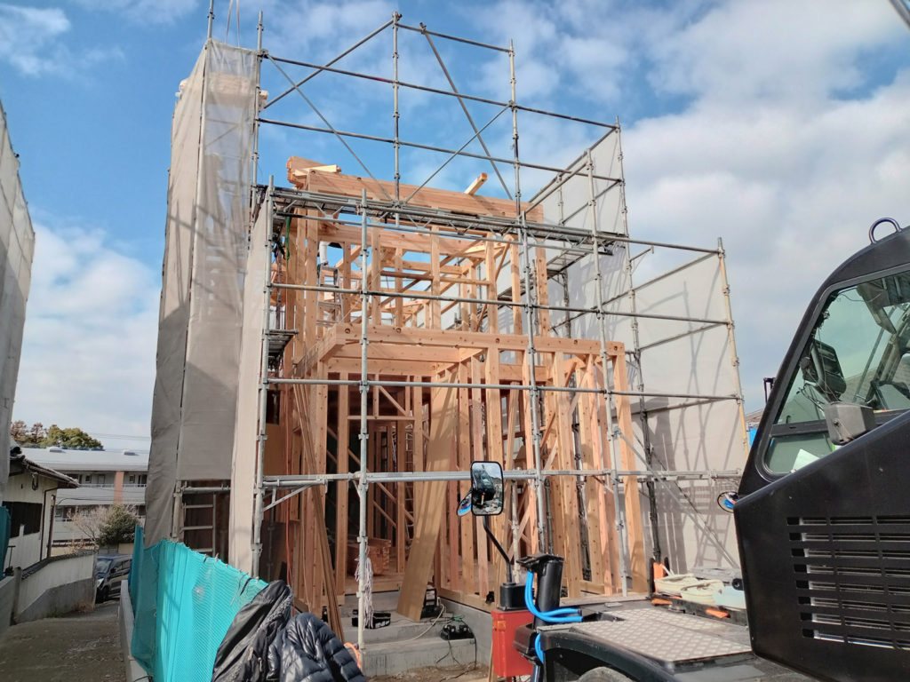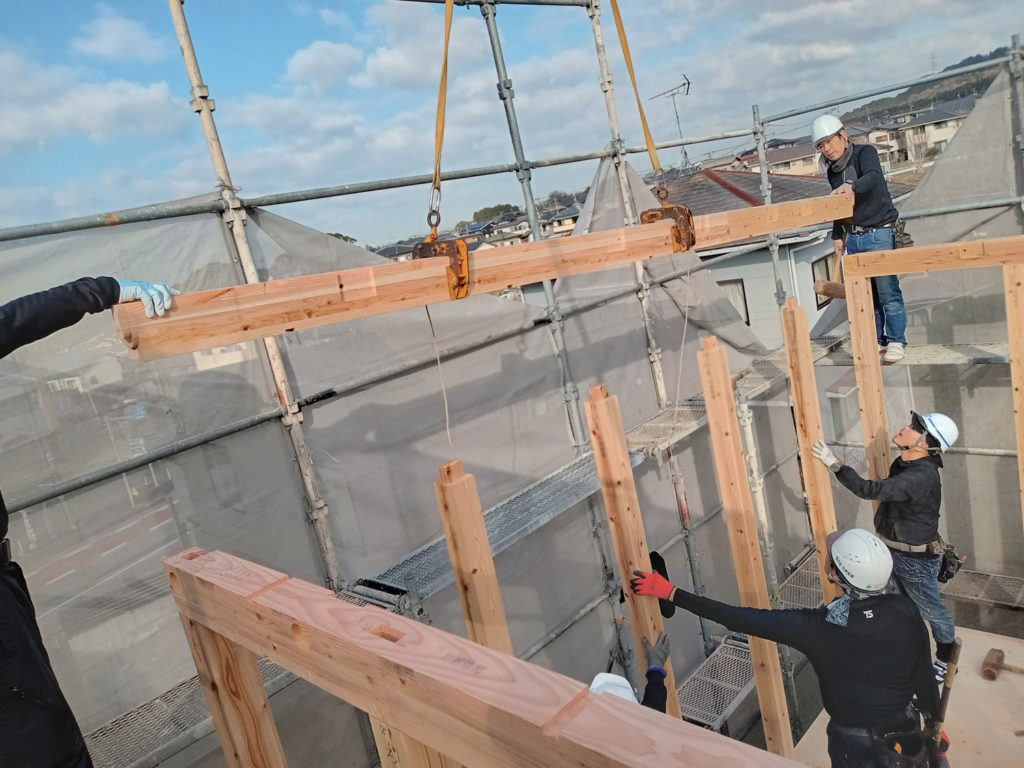先日、須恵町1号地にて、U様邸の棟上げ工事が行われました!