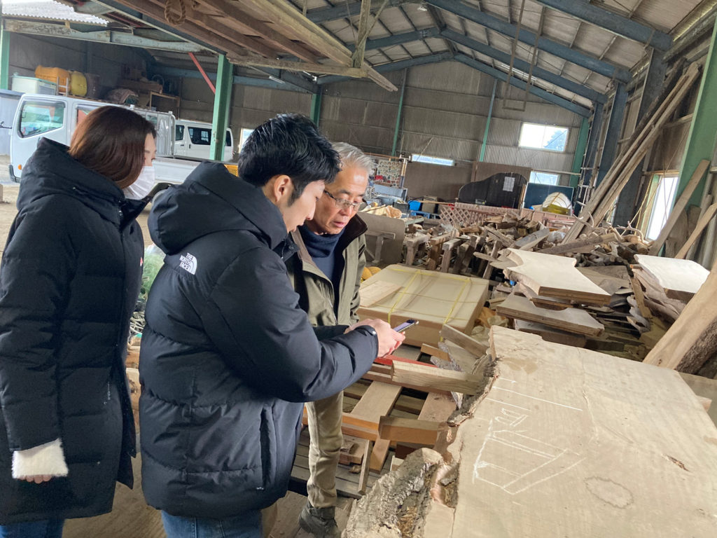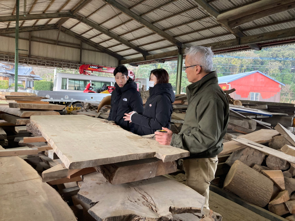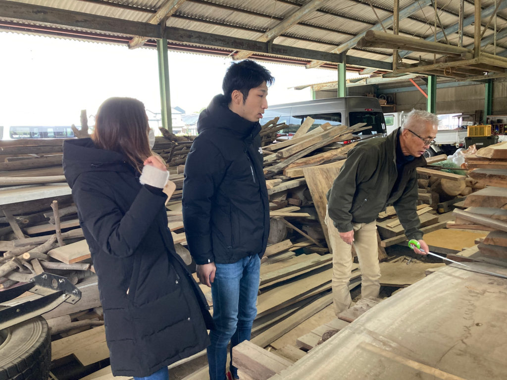 先日、福津市に建築中D様と糸島にあるMUKAさんで、板探しをしました!