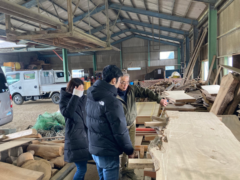 MUKAさんでは、必要があって伐採した天然の木を数年かけて乾燥させて、家具や小物などを製作されています!