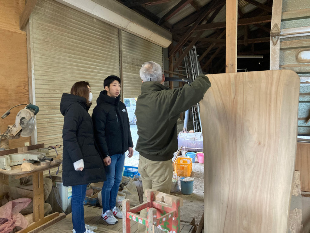しばらく考えて、今度は別棟で製作途中の板を見せていただきました!