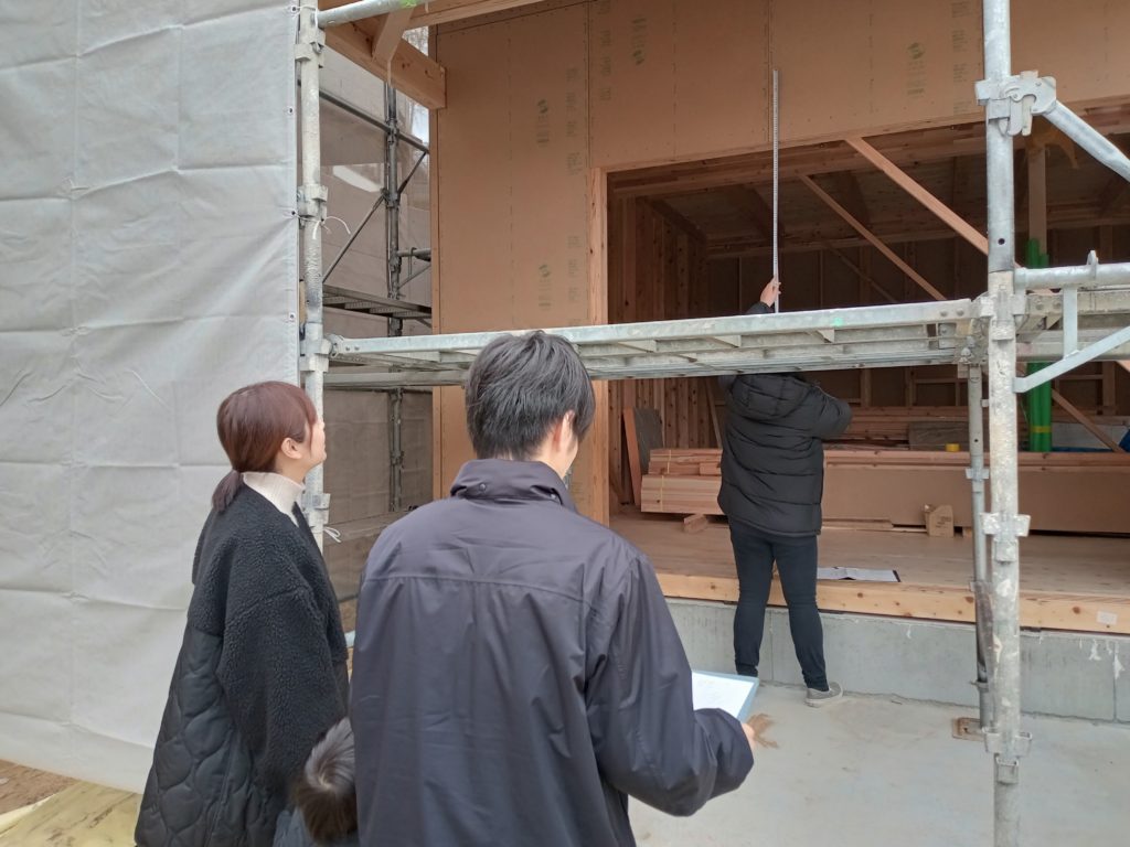 実際にできたばかりのお家で高さを測ってみたり・・・