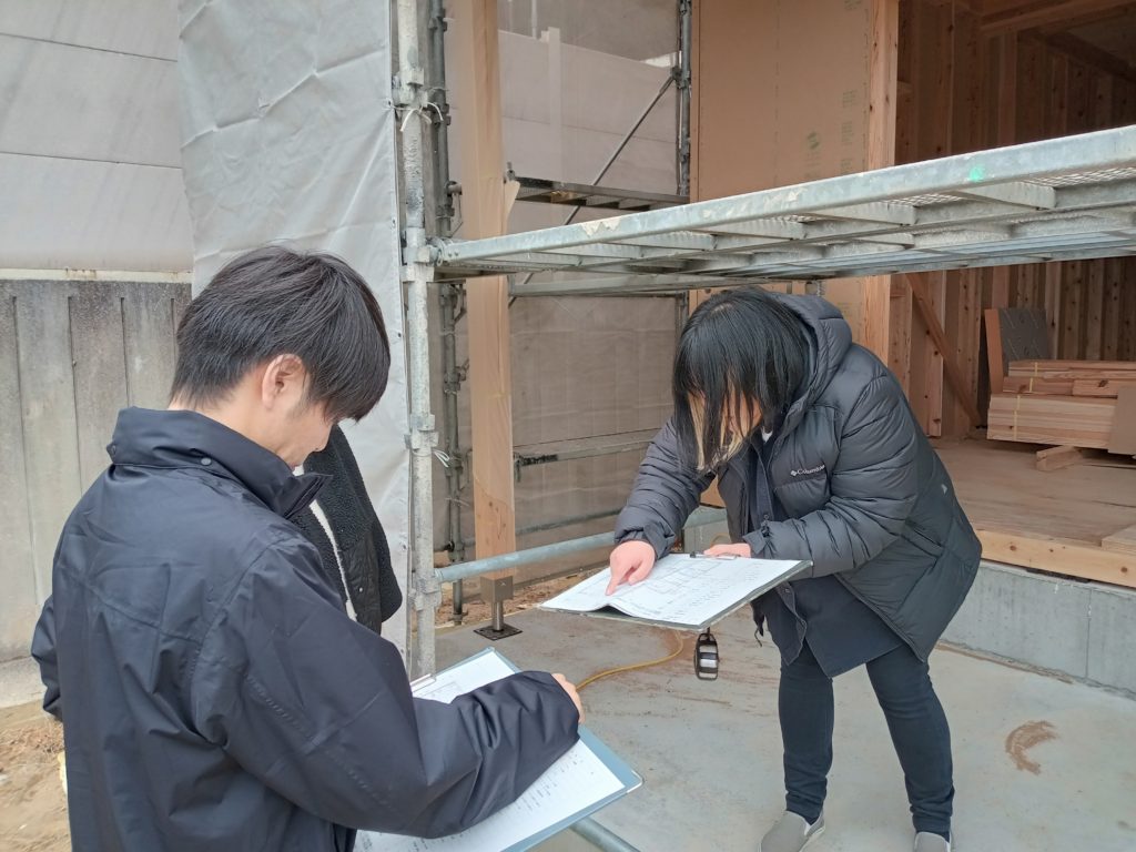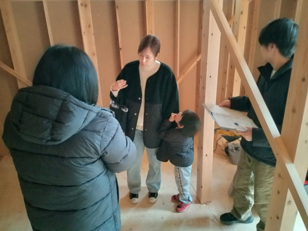 先日、棟上げ工事が無事に終わった宇美町H様邸にて、電気配線の打ち合わせを行いました!