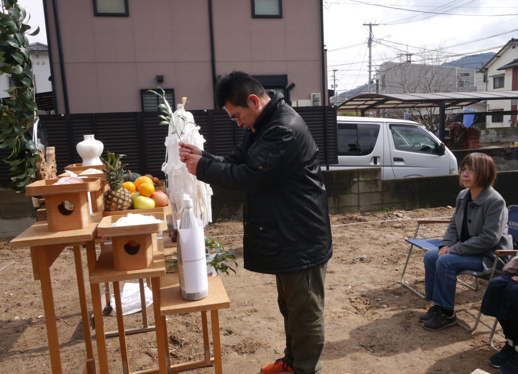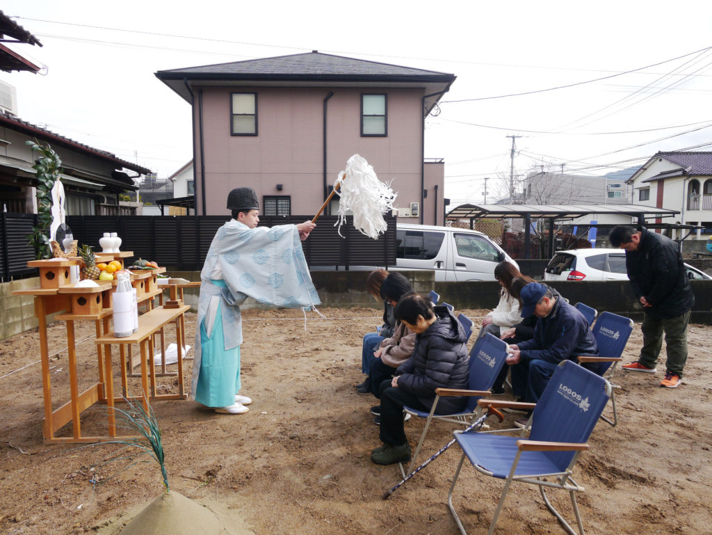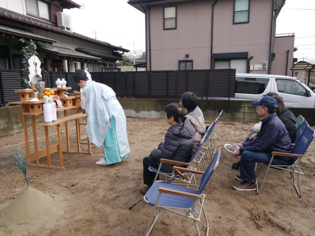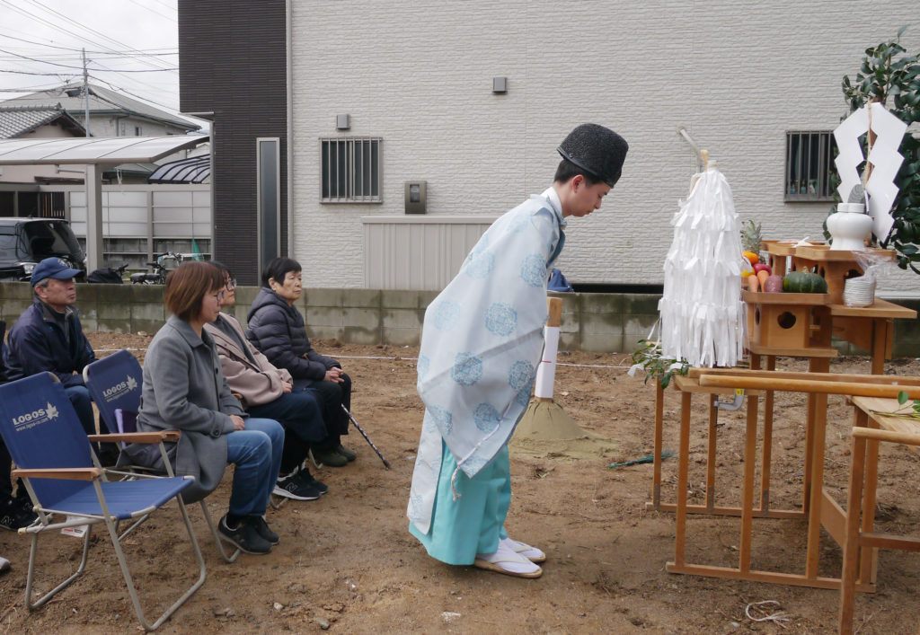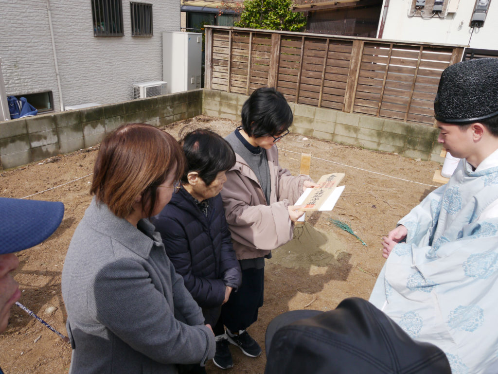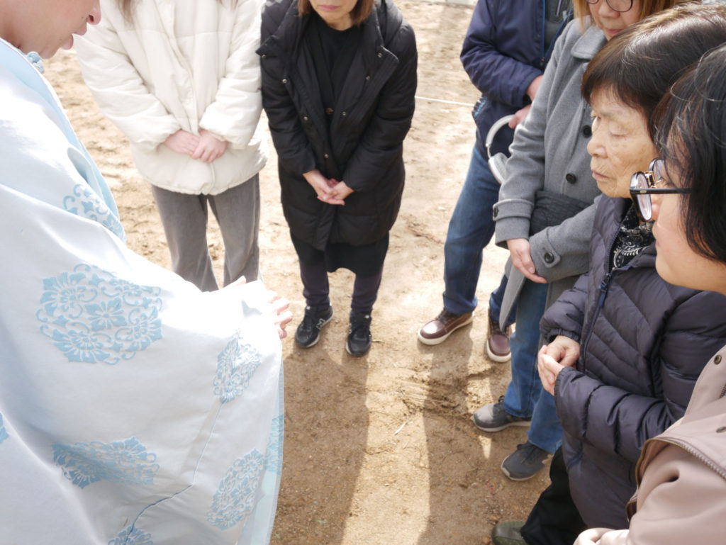 土地を守る神様に、建物を建てる許しを得て、工事中の安全や建物の無事完成を祈ります!