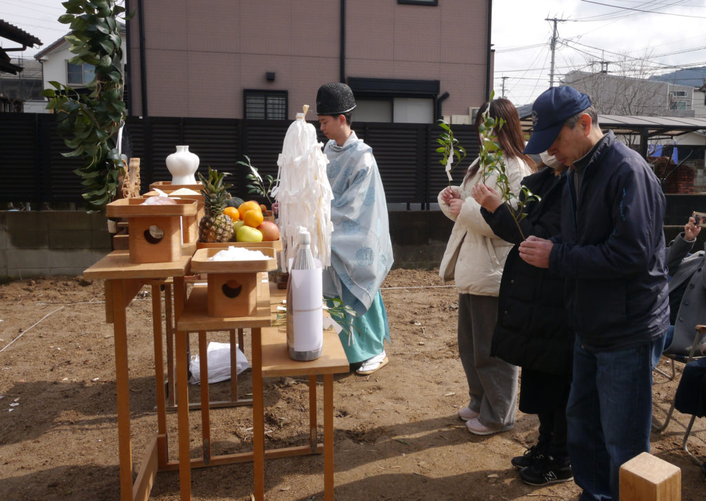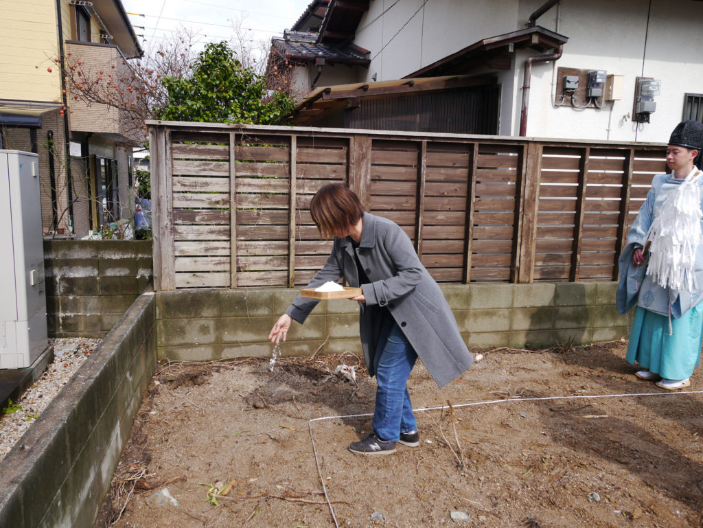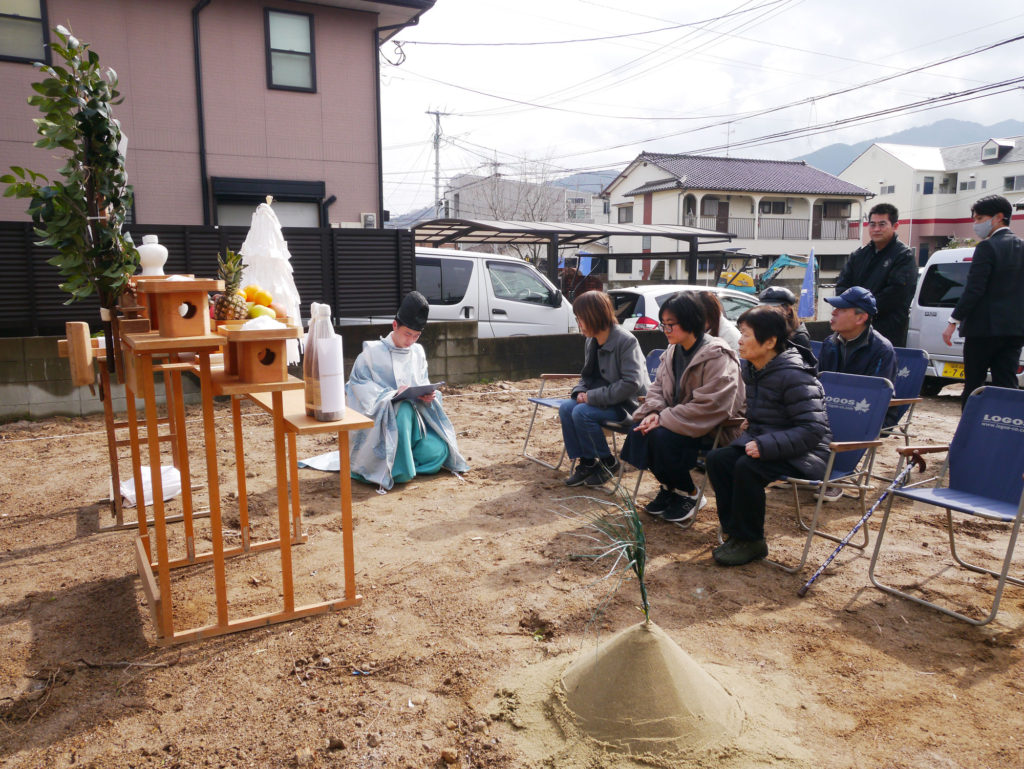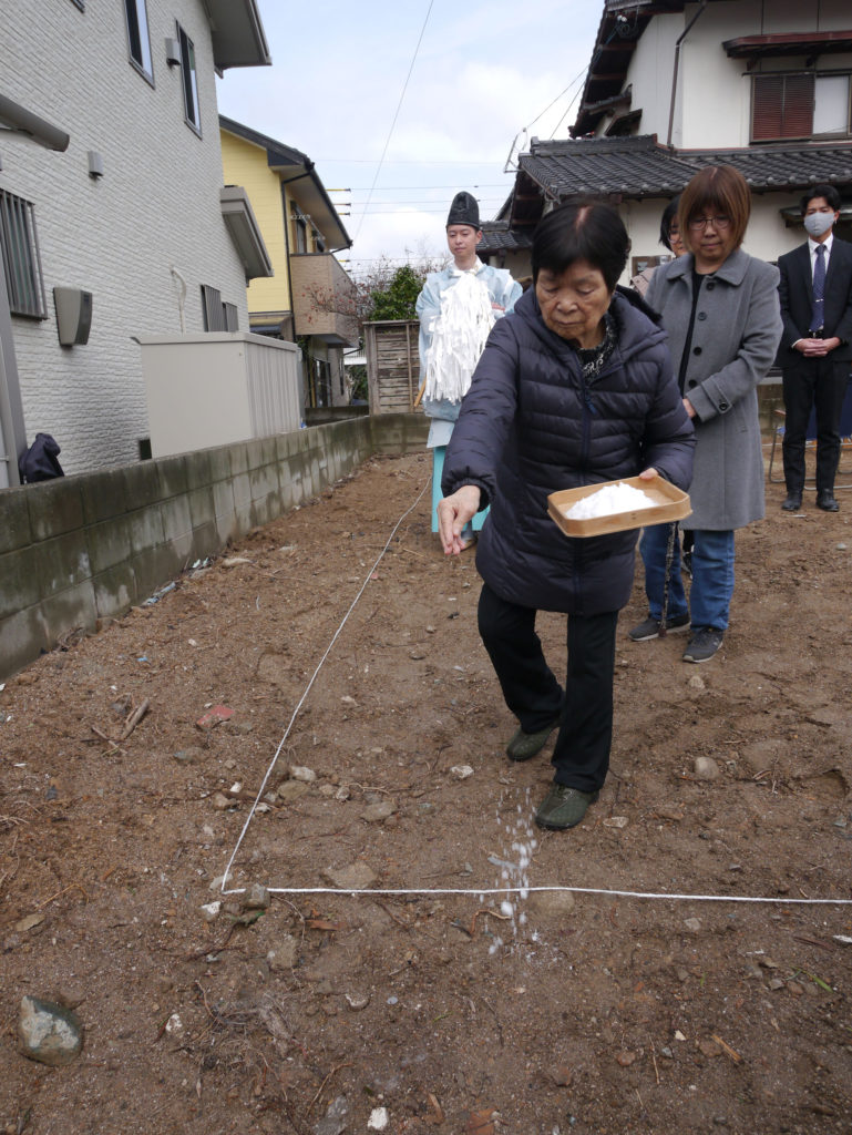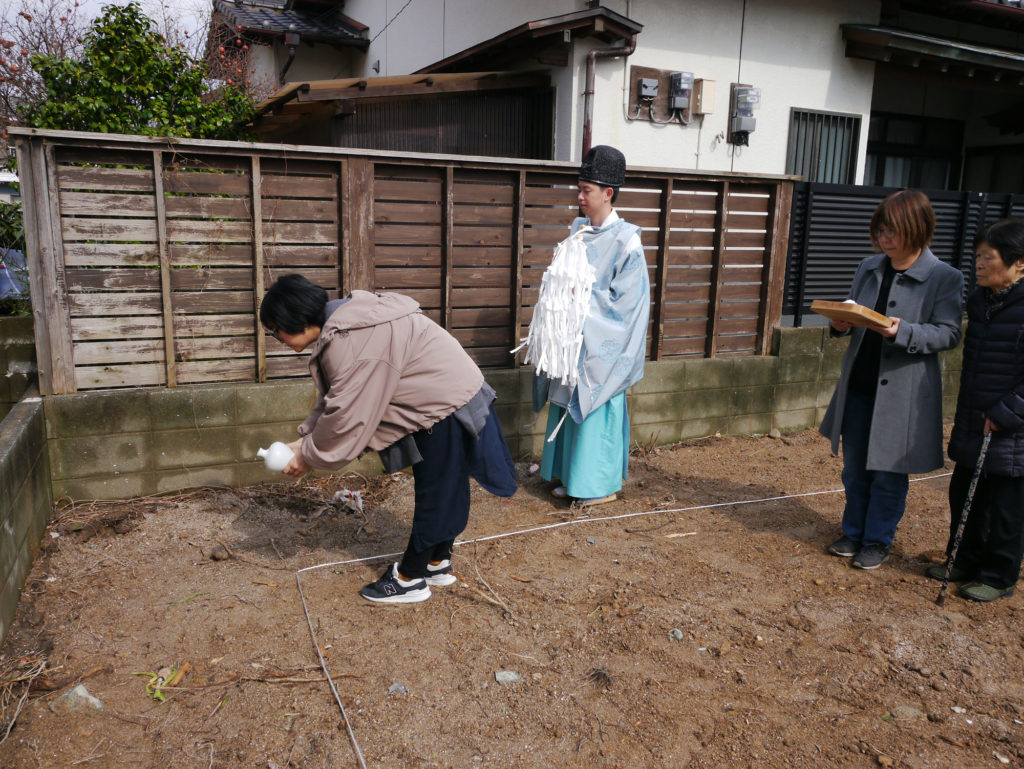 土地を守る神様に、建物を建てる許しを得て、工事中の安全や建物の無事完成を祈ります!