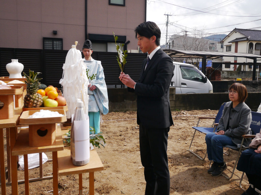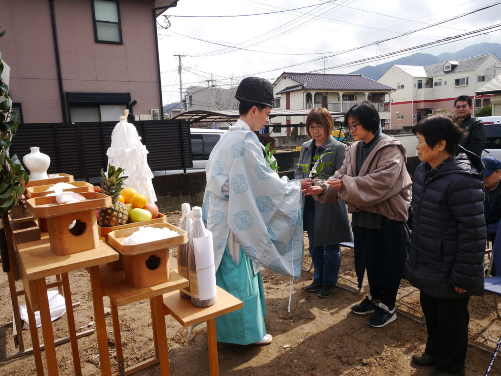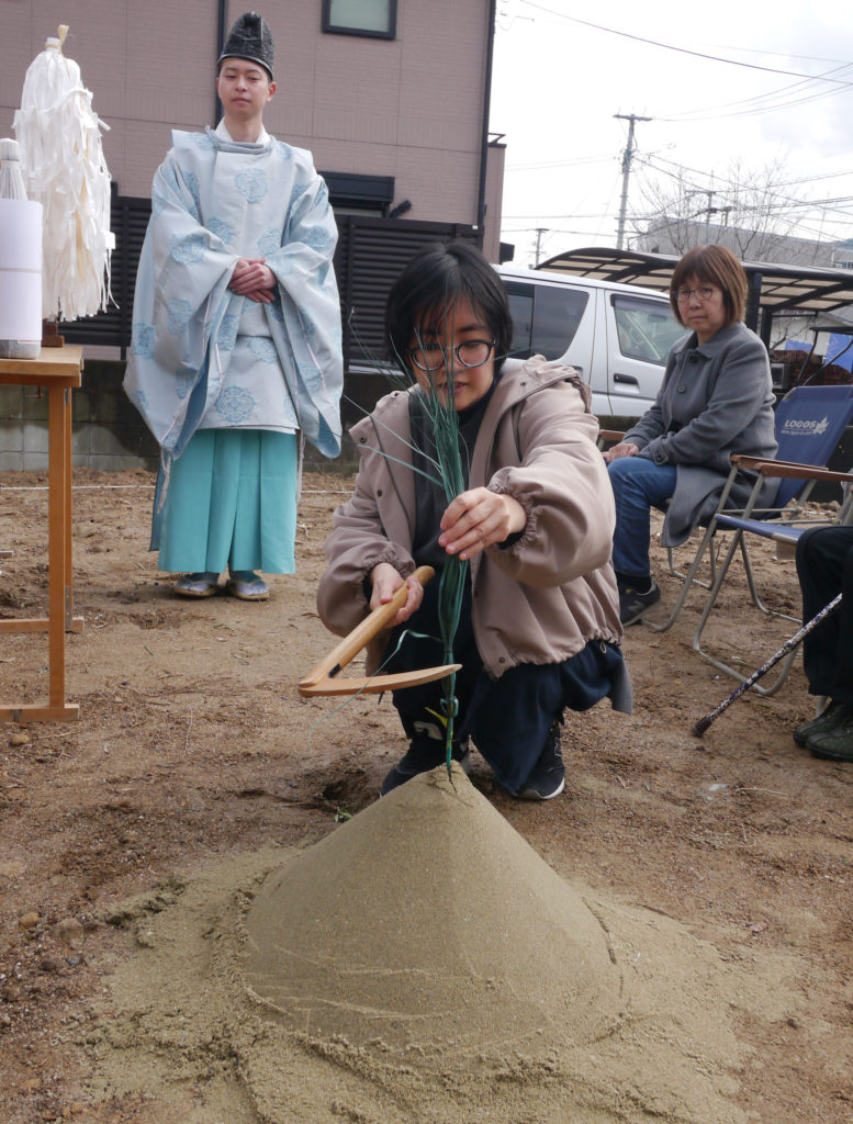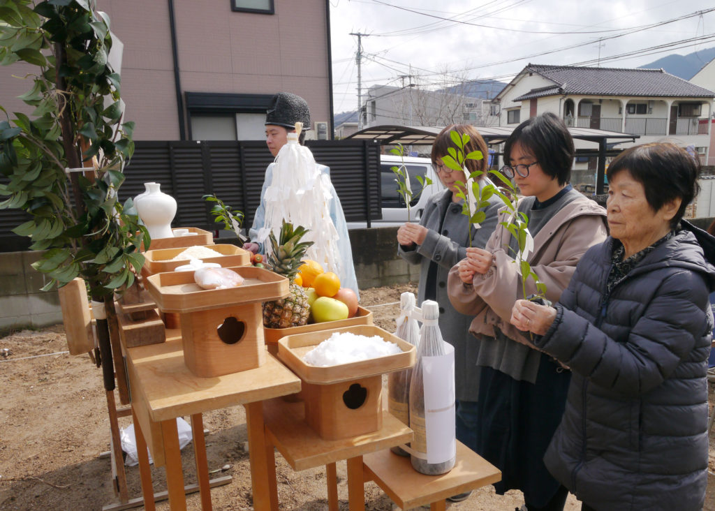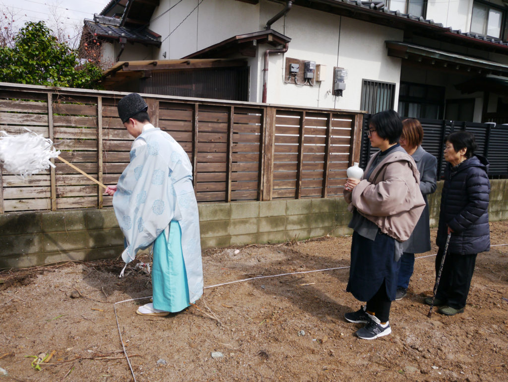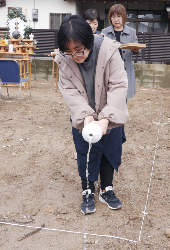 土地を守る神様に、建物を建てる許しを得て、工事中の安全や建物の無事完成を祈ります!