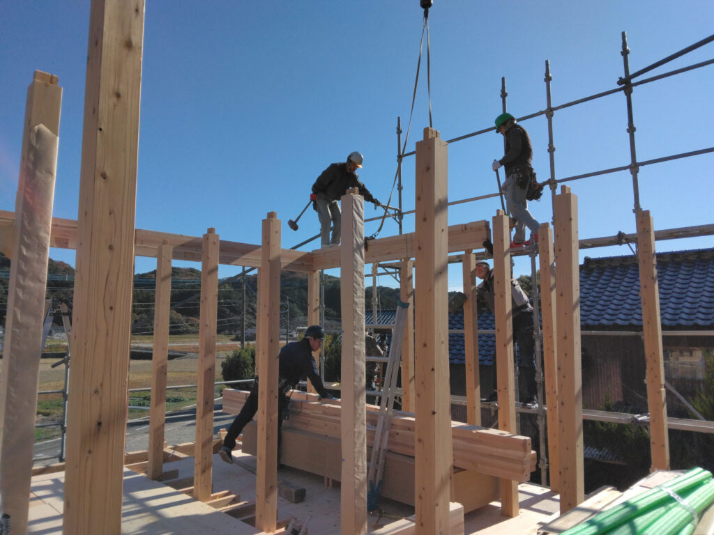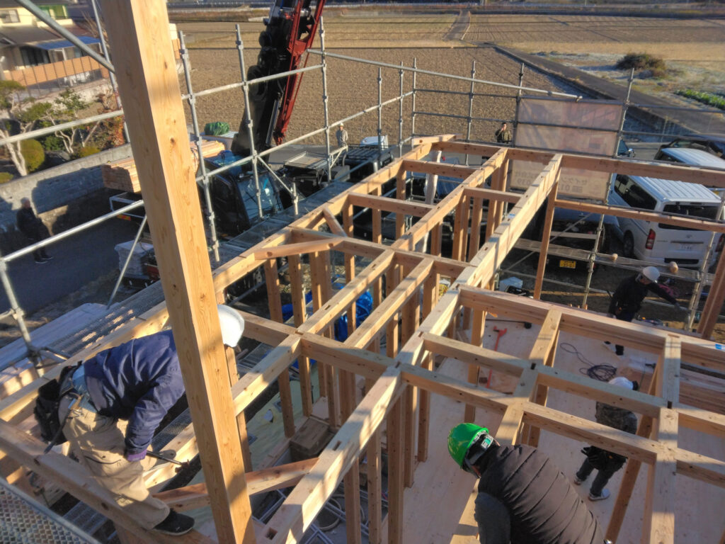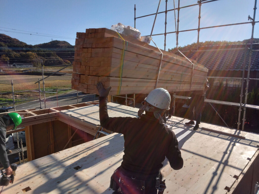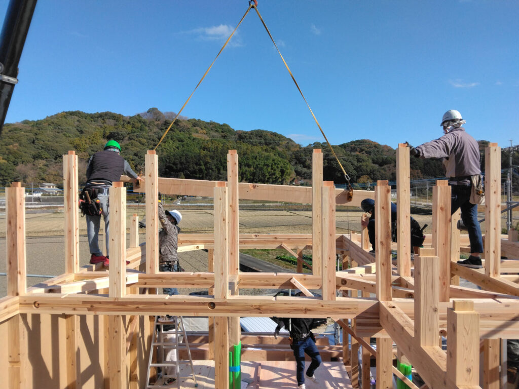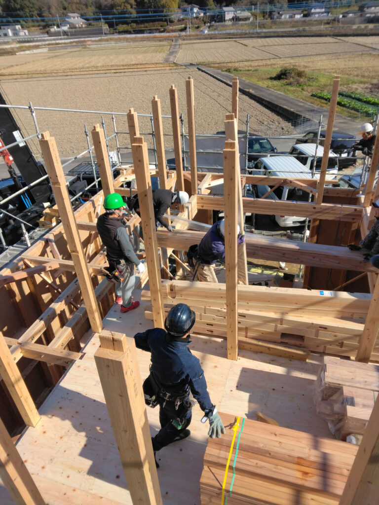 12月最初の週末、宮若市にてS様邸の棟上げ工事が行われました!