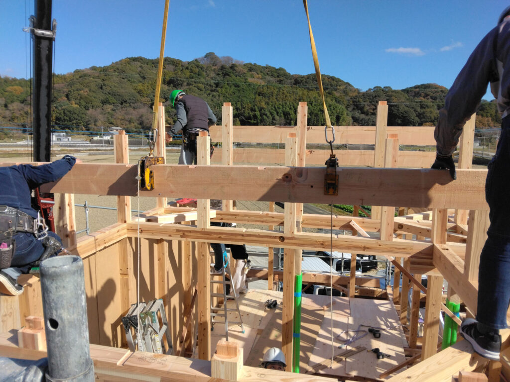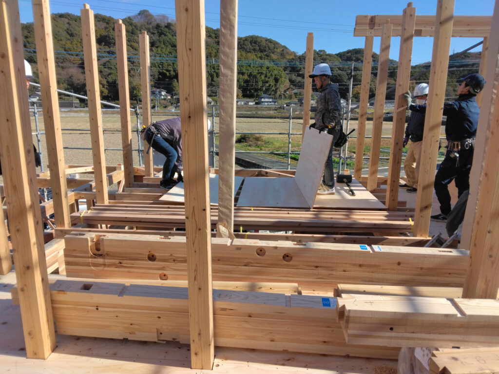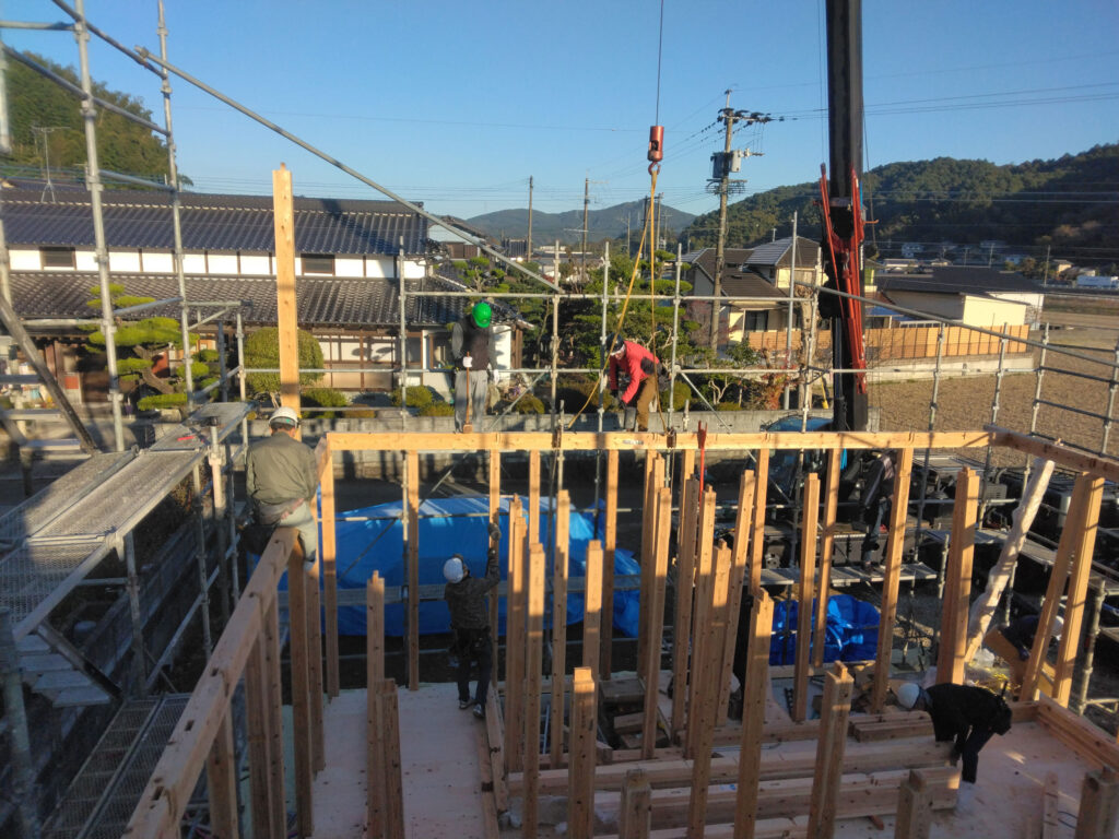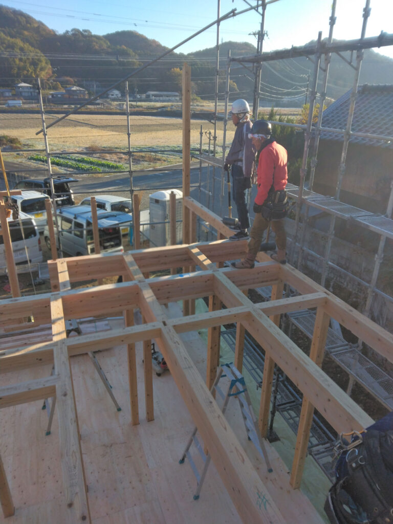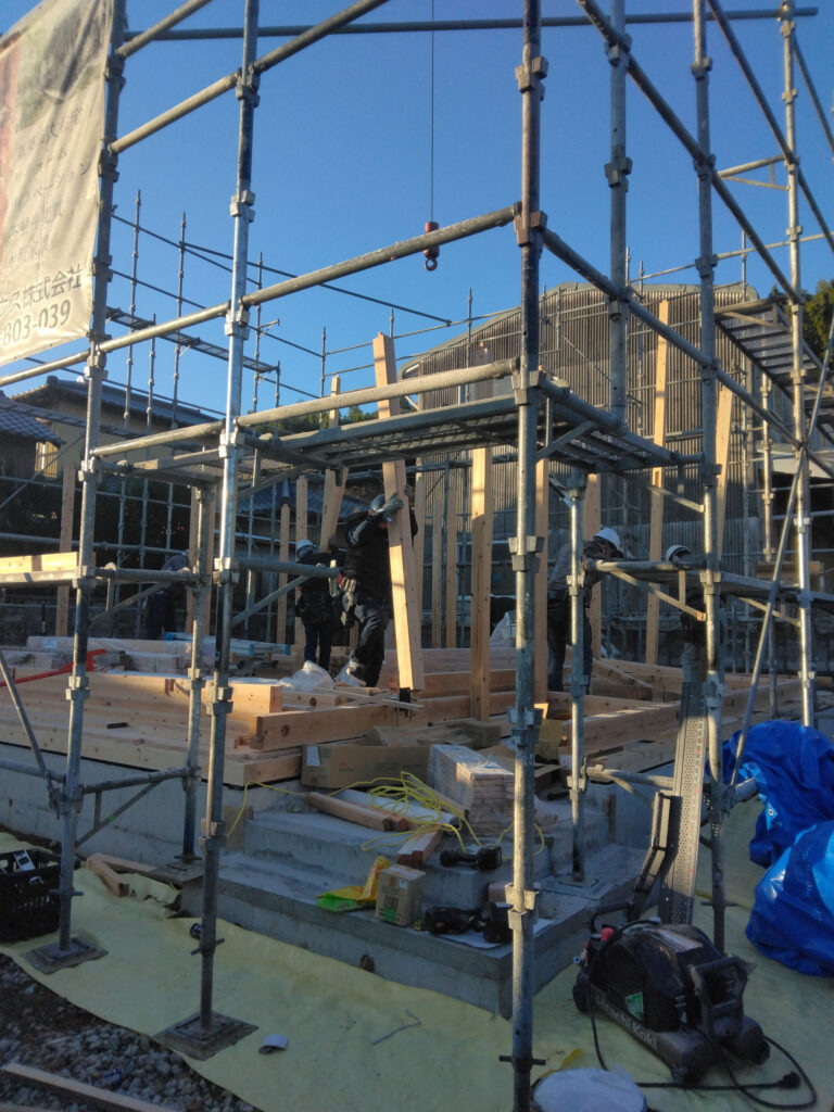 12月最初の週末、宮若市にてS様邸の棟上げ工事が行われました!
