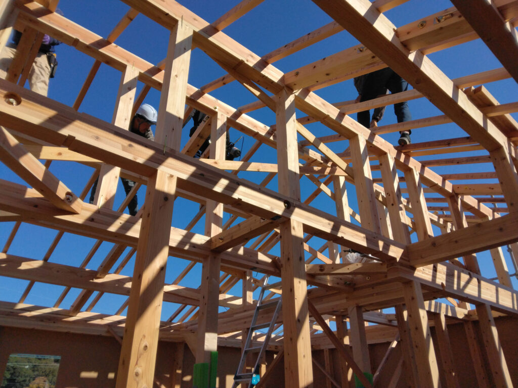 棟上げとは、柱や梁などの建物の骨組みを造り、最後に棟木を納めることを言います!