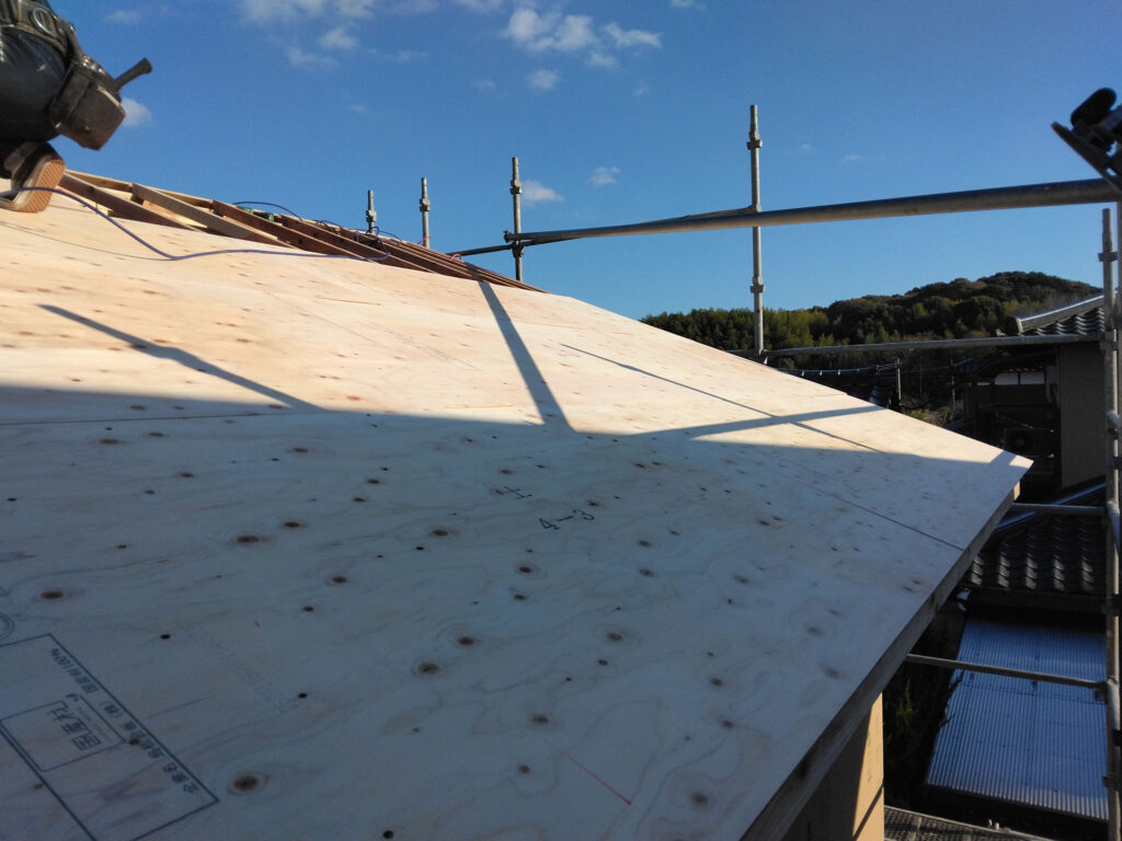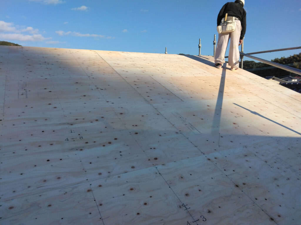 屋根の小屋組みが終わると、野地板設置して、次の屋根工事に進みます!