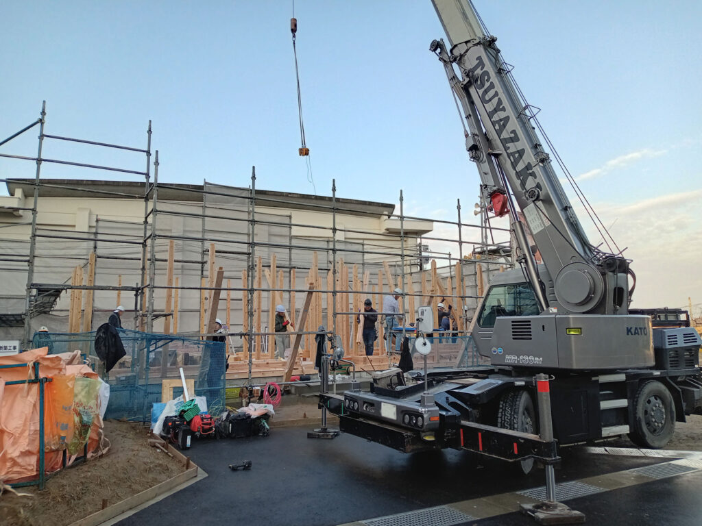 まずは、1階の柱を立てるところから始まります・・・