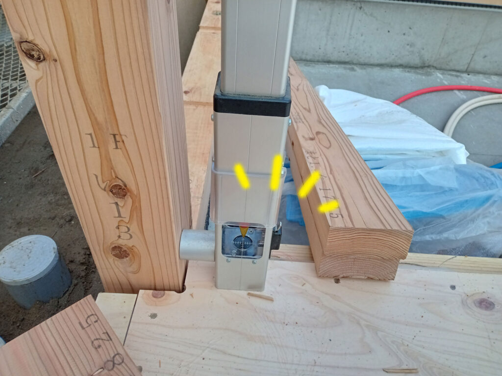柱が立ったところで、歪みが無いかを確認します!