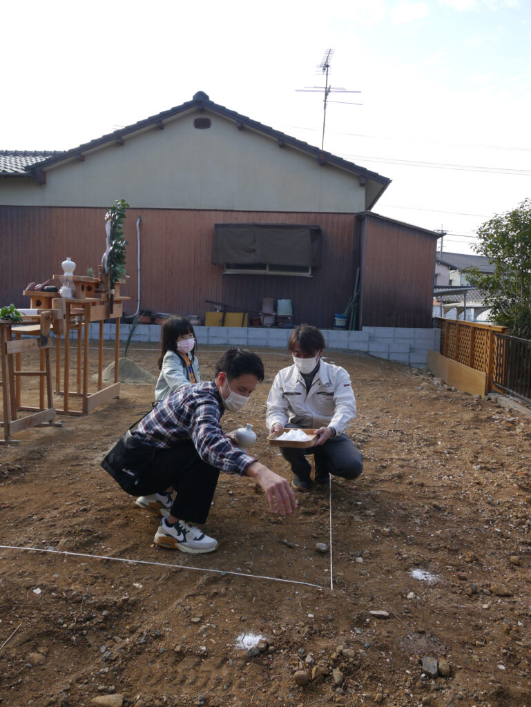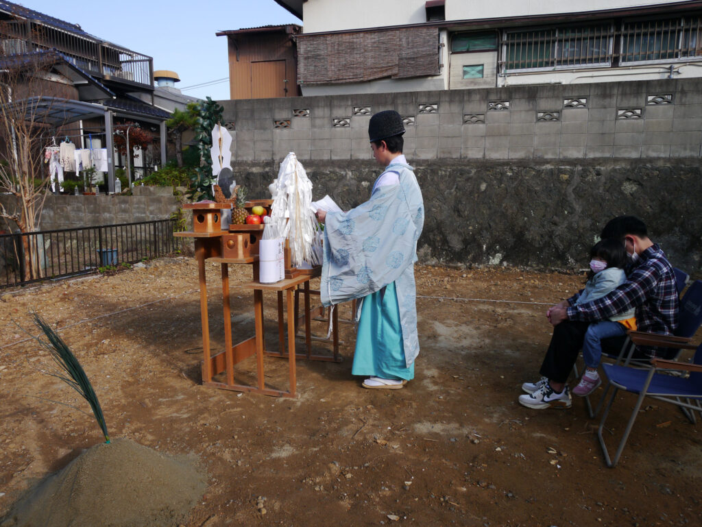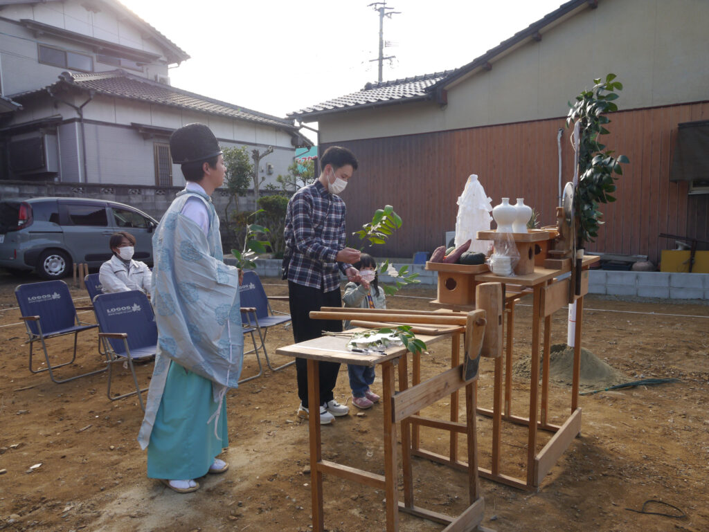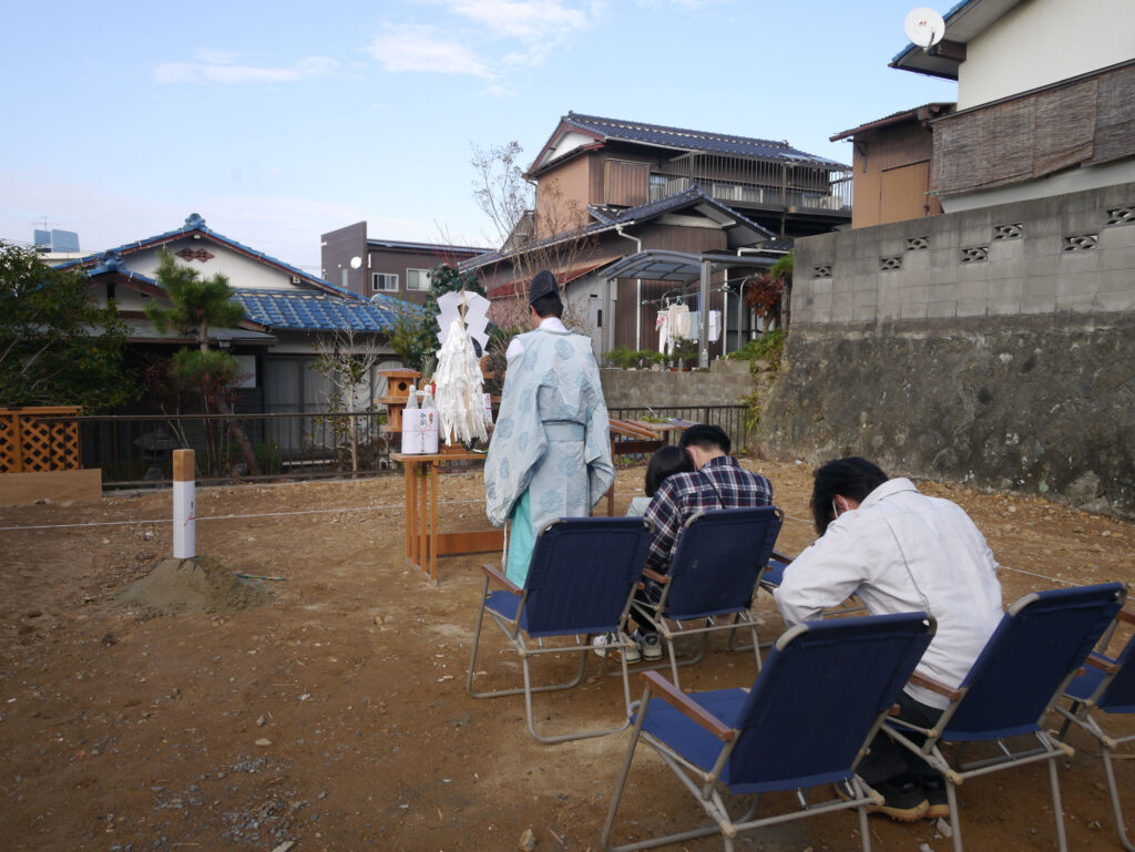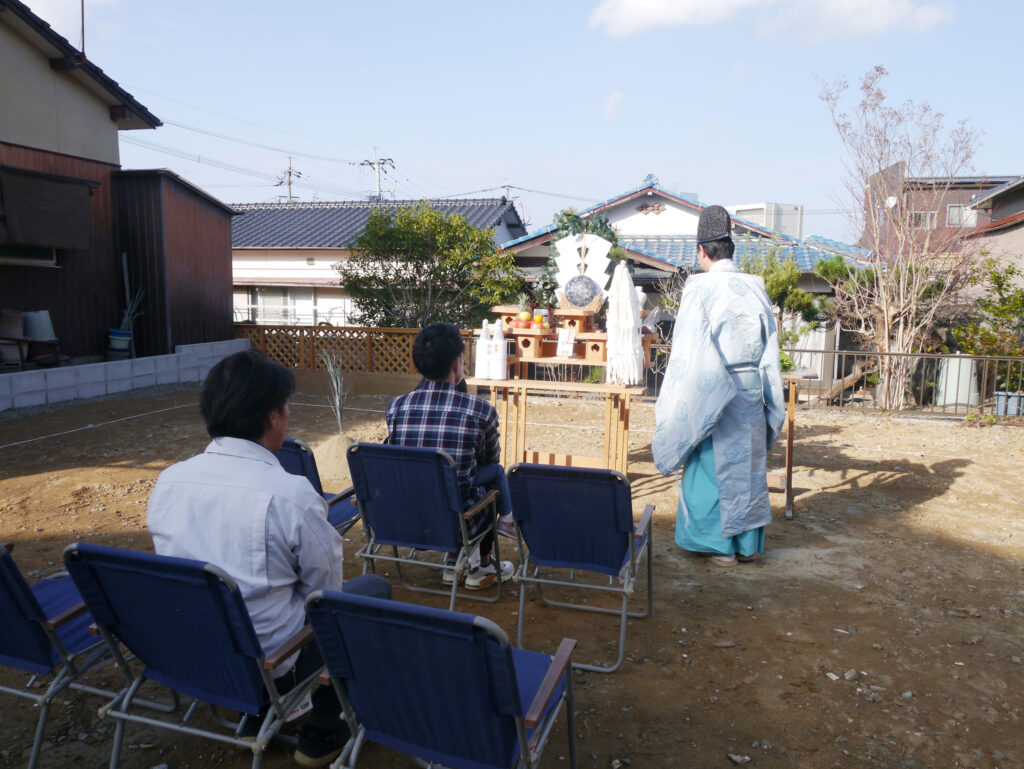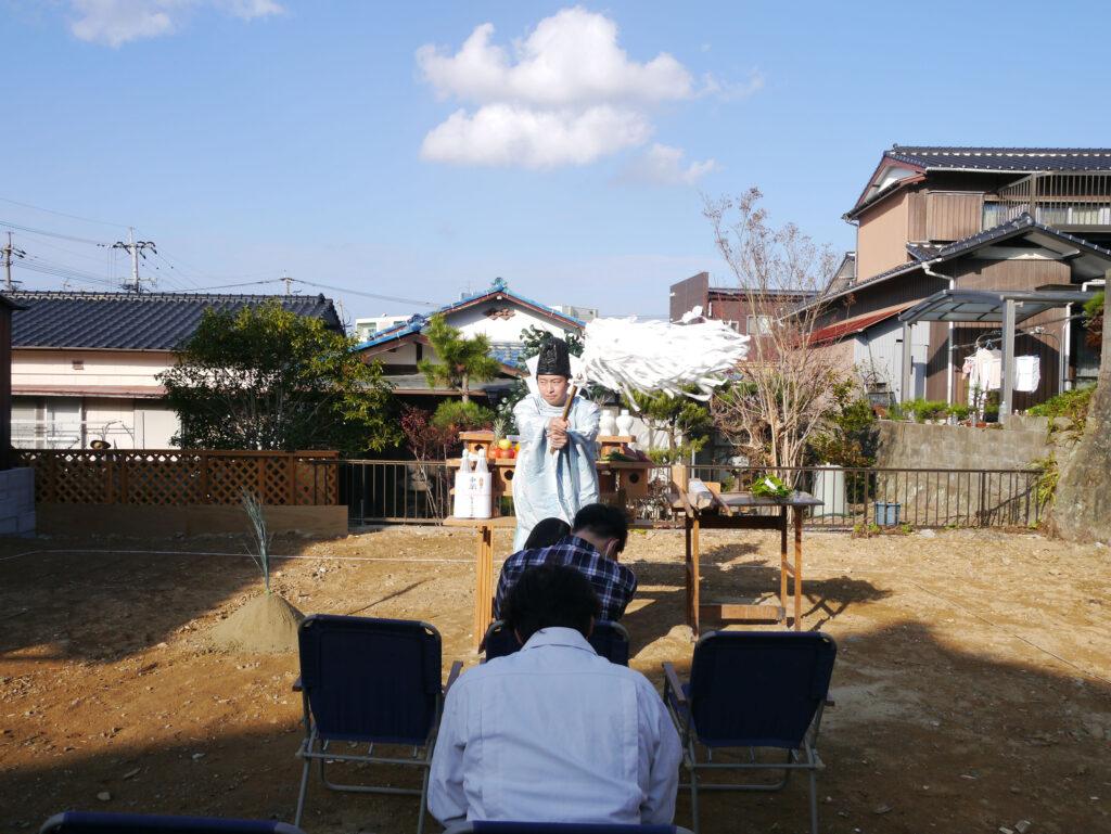 地鎮祭とは、その土地の神様を鎮め、土地を利用させてもらうことの許しを得る祭事で、建築工事が始まる前に行われます!