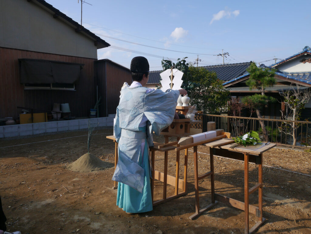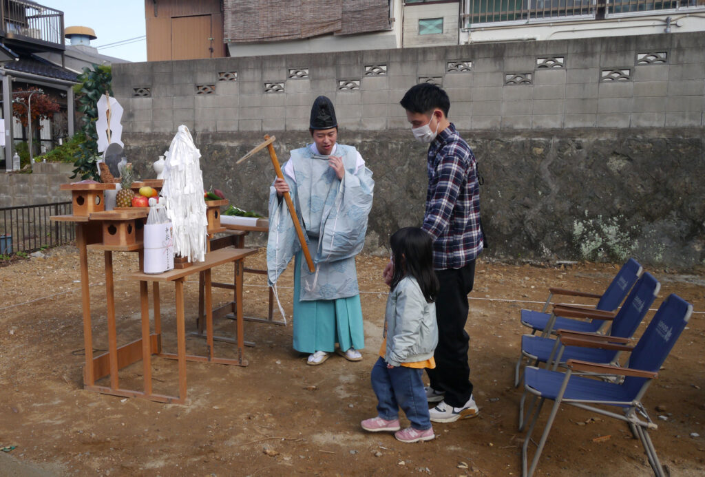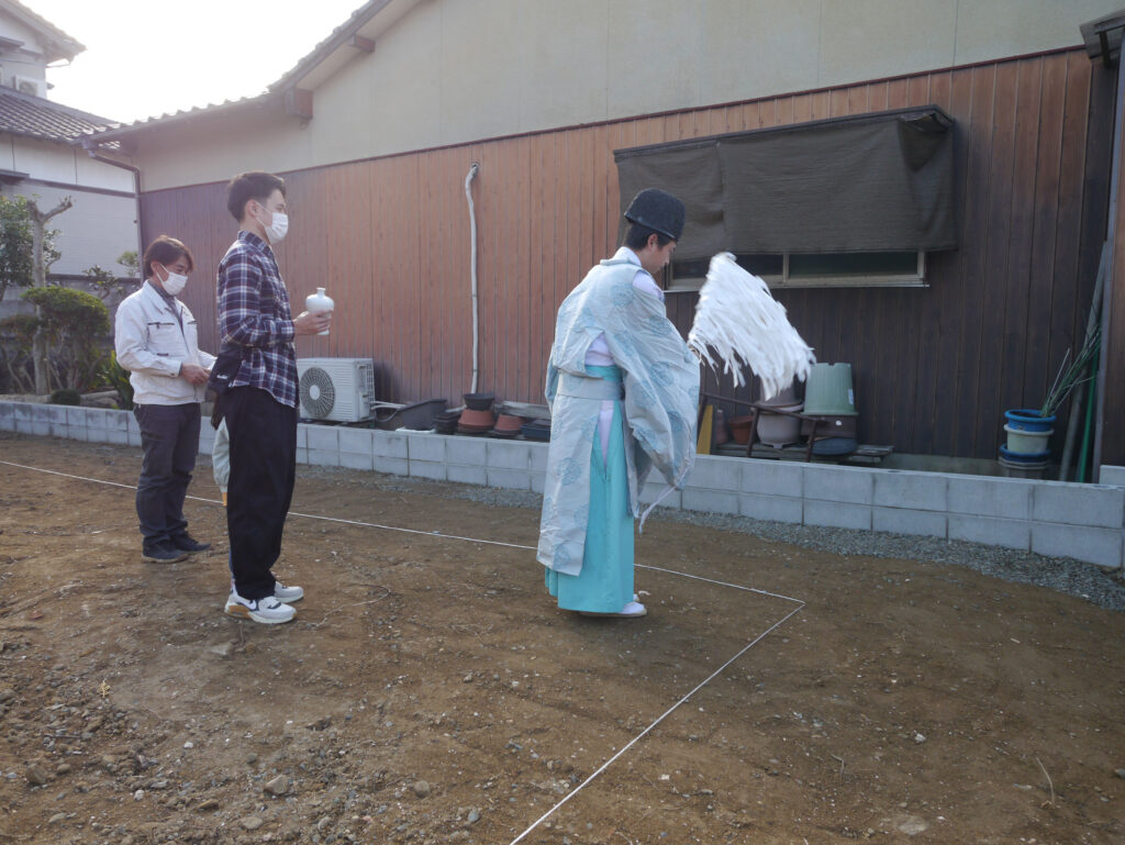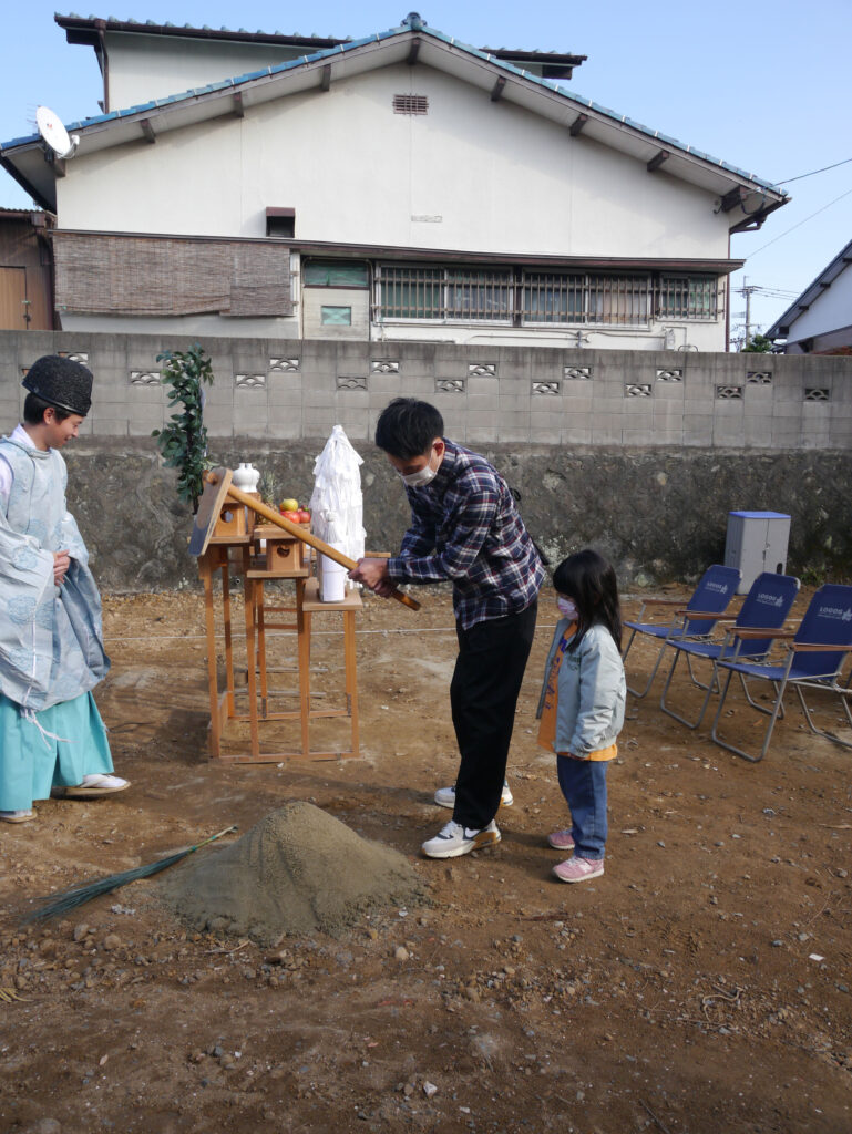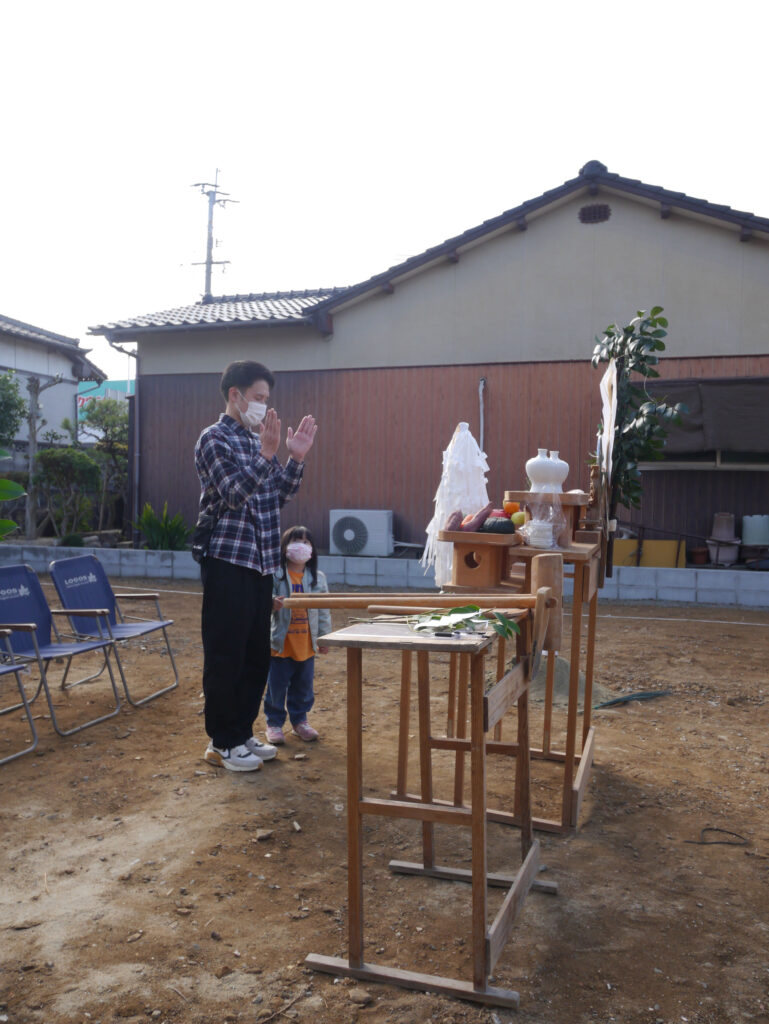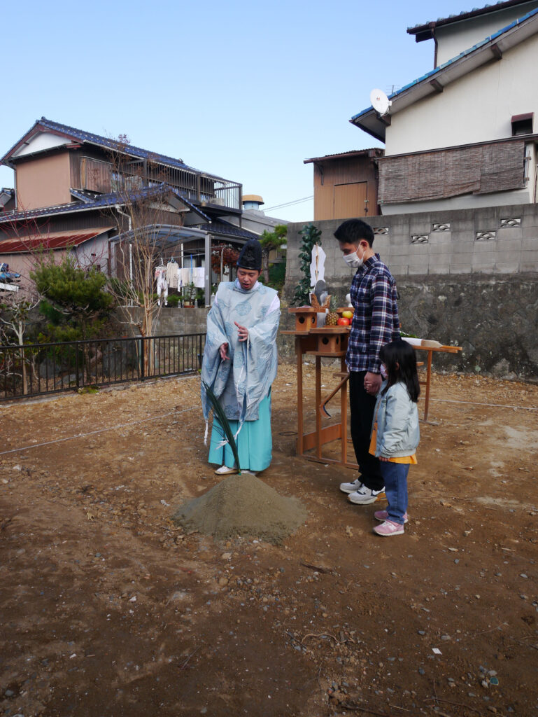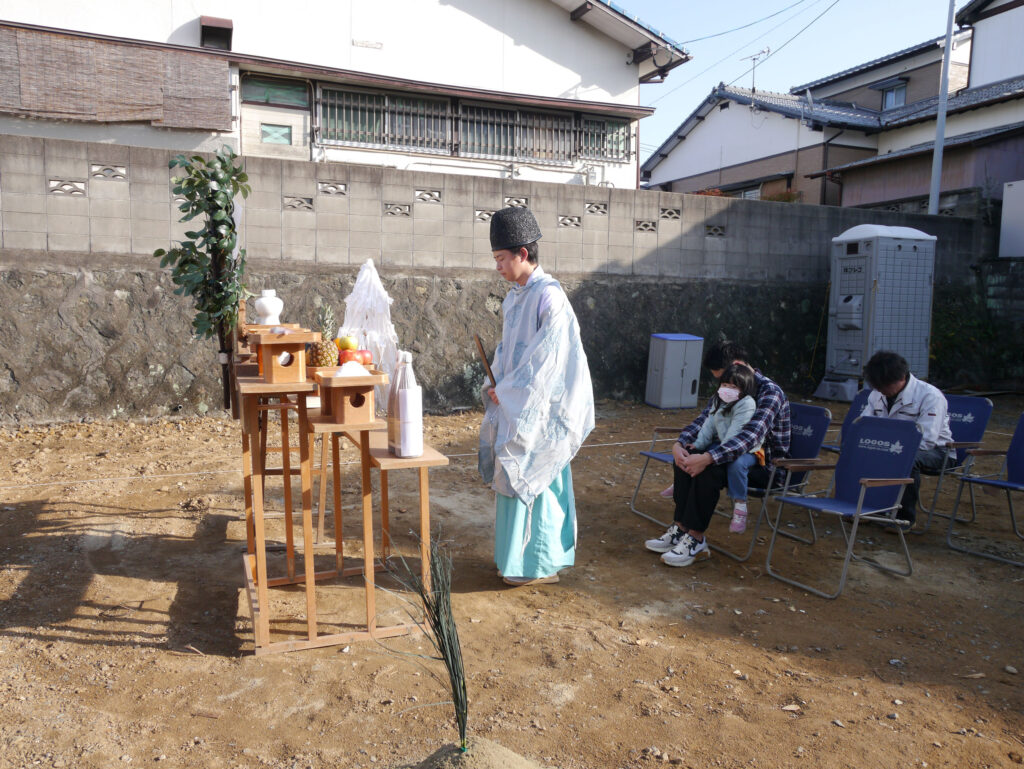 地鎮祭とは、その土地の神様を鎮め、土地を利用させてもらうことの許しを得る祭事で、建築工事が始まる前に行われます!