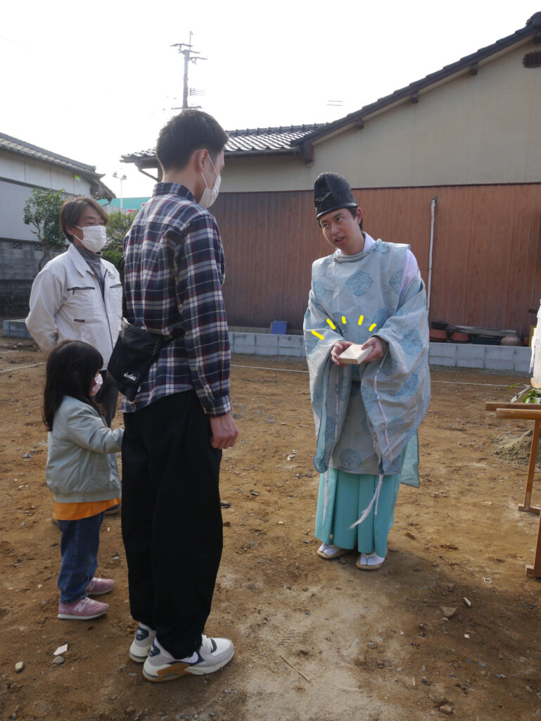 地鎮祭の中には、施主様に行っていただく動作もありますが、その都度その場で教えていただけるので安心して式に臨めますね(#^^#)