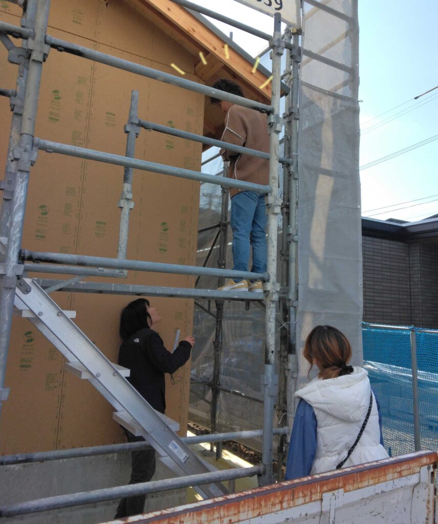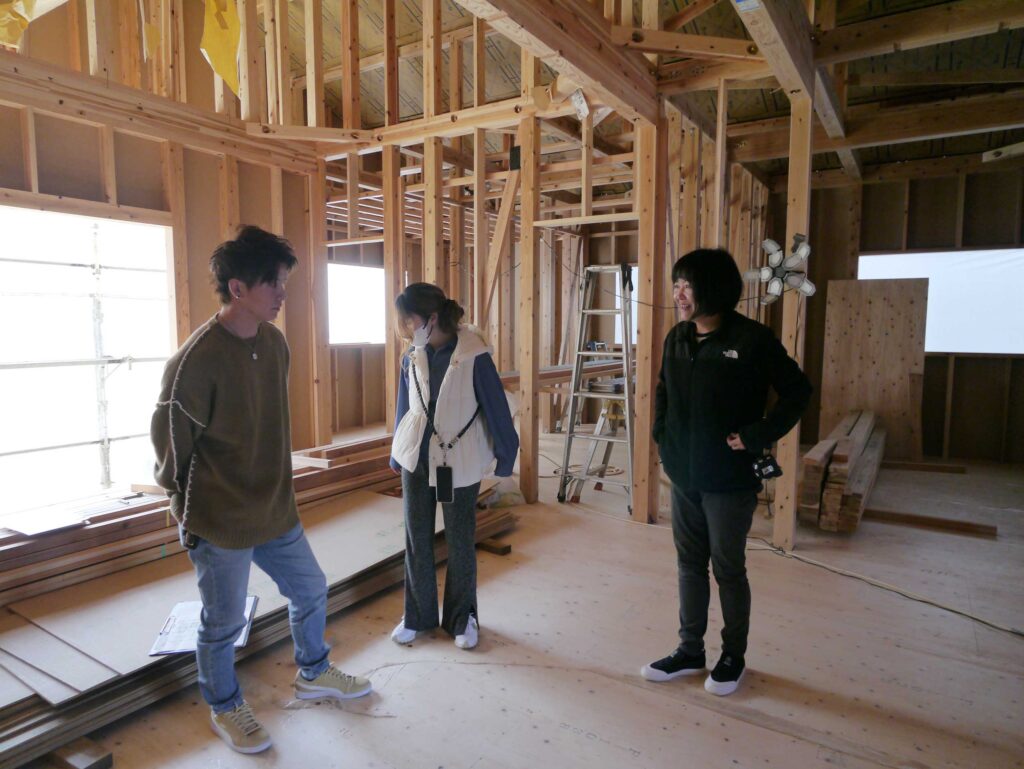 3月に入ったばかりの日曜日、上棟を迎えたばかりの古賀市T様邸にて上棟式前、電気配線の打ち合わせが行われました!