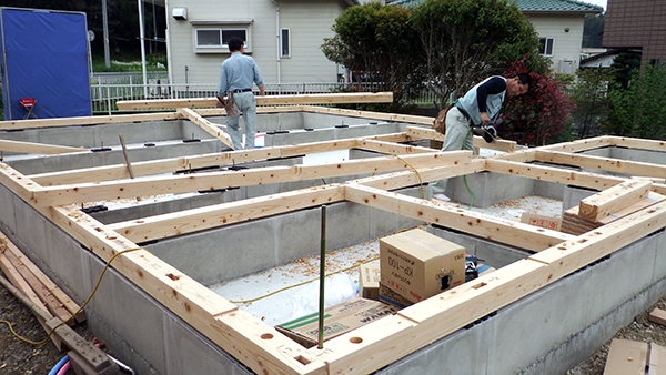 古賀市S様邸の幸せづくり状況:土台敷き♪