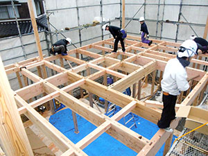 宗像市武丸S様邸の幸せづくり状況:土台敷き♪
